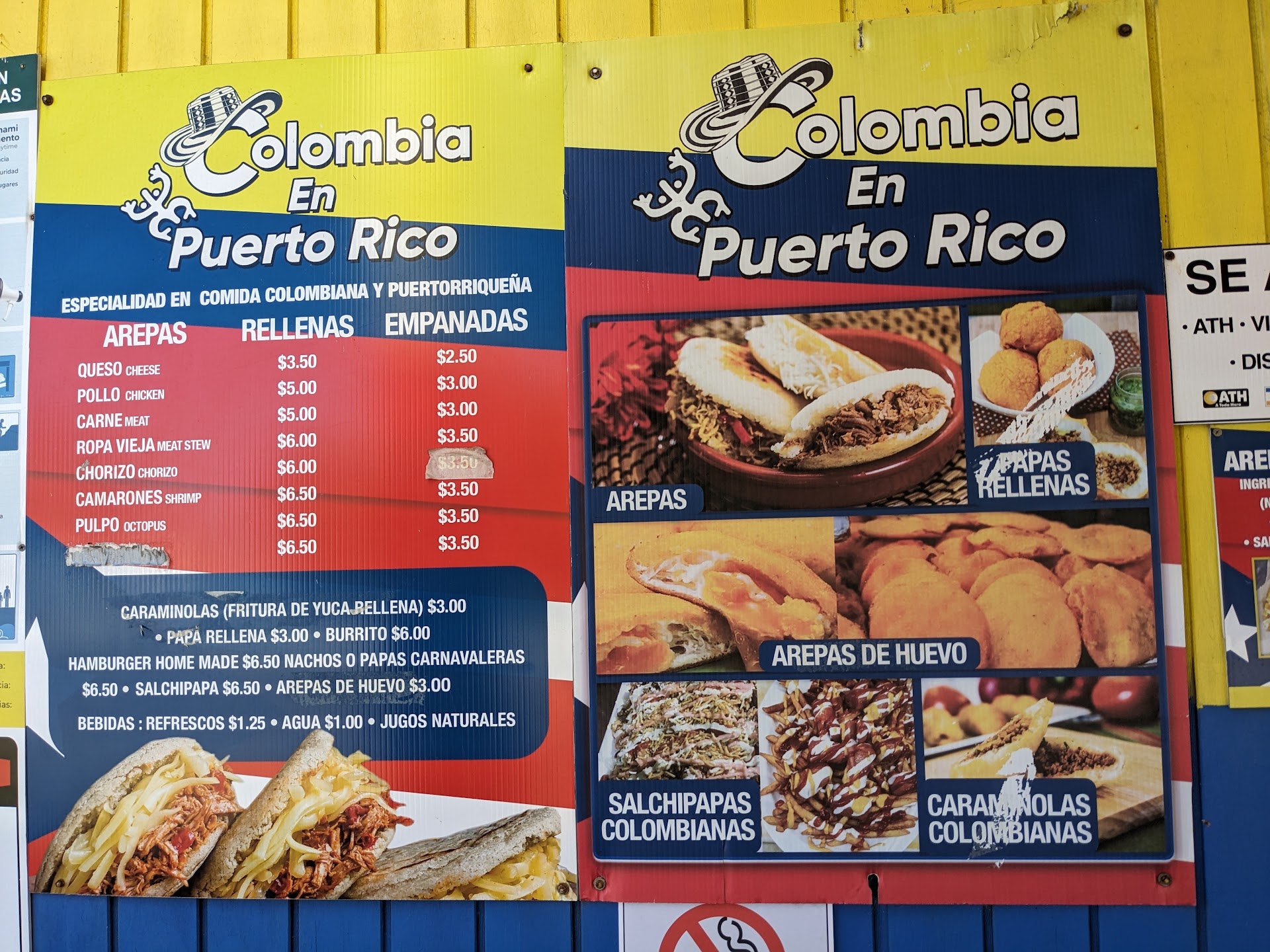 Ok..ok ..why did I HAVE to eat at a Colombian food truck while in Puerto Rico?? Because I'm weak!!! Loved the service and they had Colombiana and Postobón (Colombian sodas)!! It was later in the day, so they didn't have arepas de huevo, but I will try again tomorrow!!! The arepas are yellow corn...if that means something to you then you're welcome. Still good, but I love thicker, white corn arepas. The beef empanada...mua!!! Delish!! The owner is super friendly, and I wish him great great success. Maybe louder Colombian music to add more to the wonderful food truck. P.S. they have tables and a...