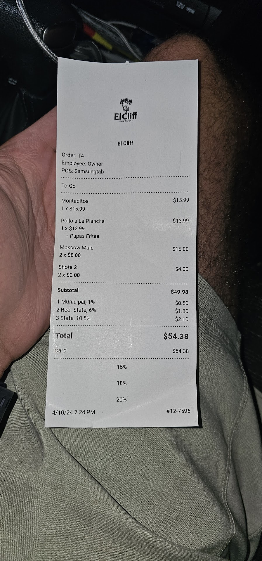 I came in for some drinks and a quick bite with a friend last night and the experience was just enough to never visit El Cliff again. The food was great. The apprearance and taste were as expected but, the quality of service to price ratio was not there. We ordered 2 Moscow Mules that were so bland we asked a server if there was any alcohol in it, to which she informed us that there was but offered to add an extra shot to make things right. We were happy with how she handled things and how accommodating she was and this was the only reason I tipped. When I got into the car we noticed the drink was even more bland as if she added water and so I looked over the receipt and realized she charged us for the 2 bonk shots. I'm completely disappointed with the entire experience. Im grateful for the kitchen staff's hard work and great food but, would...