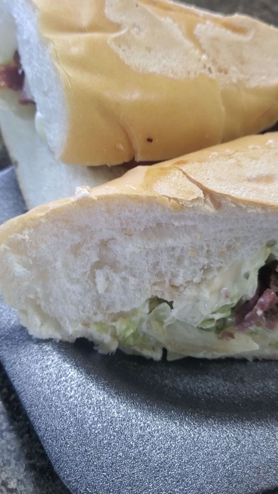 The pastrami was rubbery, cold and looked like it needed a bit more time in the fires. And when you opened the hood in that sandwich, it looked empty. The meat was only in the center and very little of it.