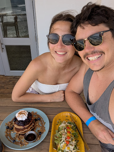 I can’t say enough great things about Hippie Mango. First I’ll start by saying this place was so good, we went back the next morning again because we couldn’t stop talking about it. The view of the ocean and the breeze on the back patio is amazing. For drinks we tried the coco latte and the hibiscus infusion the first time. The second time we had the playera infusion and the surfed out batido. I loved the juices and my husband couldn’t stop talking about the surfed out batido because he loved it so much. For food the first time we split the El Set with eggs and had a side of pancakes. This was the perfect portion size for us to split and not feel too full. The next time we went we had the Resurrection with eggs and wildos big breaky. Each time we were very happy with our meals. The service was great 10/10 recommend and will be...