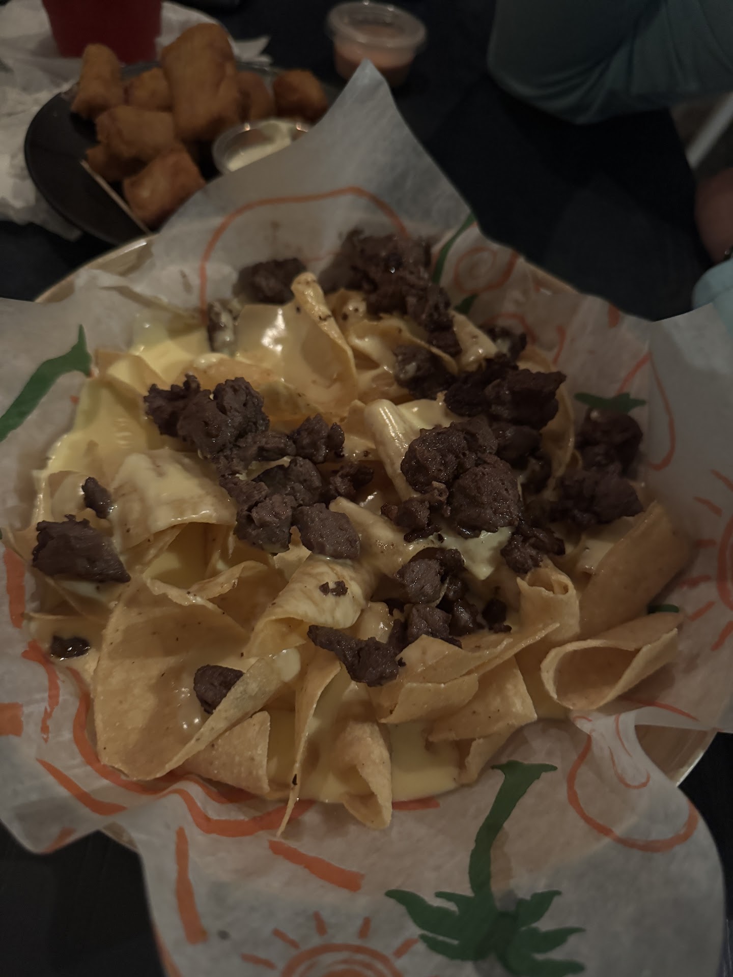 The food took over 45 minutes to arrive, and everything was served at once, which didnât allow time to enjoy the appetizers before the main dish. We ordered sorullos, masitas de dorado, and skirt steak nachos. The sorullos and masitas were just okay, but the nachos were disappointing. The sauce tasted like heavy cream with a little garlic and butter over store-bought chips, topped with skirt steak. The steak was well-seasoned, but the rest of the dish didnât come together.