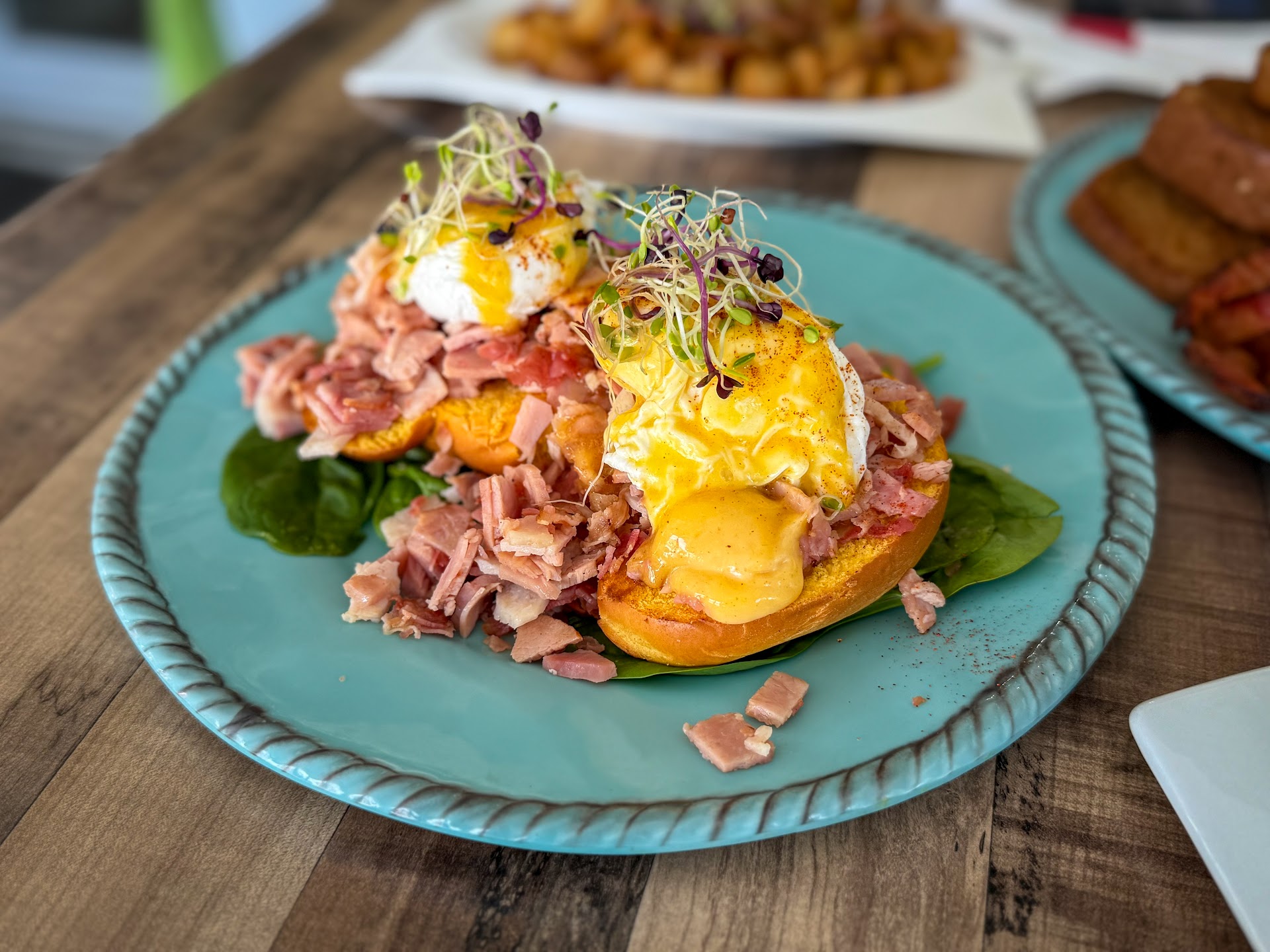 Nice place, beautifully decorated and clean. My order came out incorrect but I didn't say anything until I ate most of it because I needed to get food in my tummy because I had just taken my medication. I ordered French toast, eggs over easy, bacon and toast with a Chai latte. The Chai was great, the eggs we're sunny side up instead of over easy and got pancakes instead of french toast also the bacon was cold and so was the toast. The order came out very fast what lead me to believe that the bacon,pancakes and toast are pre cooked and probably in a pan or hot cart. Just my opinion as a former cook, might be wrong but if I am why was it cold? My recommendation if it's as I suspected is that if in order to get orders out fast they have bacon and other things precooked they either reheat things a few minutes before serving. Example the bacon can be reheated on the grill while the egg's are being done, same can be done with the pancakes that by the way were a bit dry and tasted like cornbread. Not terrible but definitely not fluffy. I was a bit disappointed by the experience because the place was recommended by a family member and I guess I had higher expectations. They are easy fixes and I'm sure they will correct them if they want to do a lot better. I still have them a 4 star rating because of the treatment, location, cleanliness and coffee and tea. My wife's omelette was loaded with vegetables and hot although the omelette itself was paper thin ( I know eggs are scarce and expensive right now) her cappuccino was great and the presentation by the barista is...