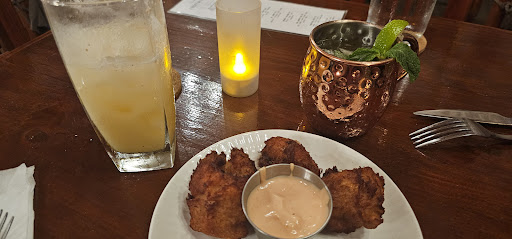This was our first time visiting this place, as it wasn't open during our previous three trips to Vieques in 2018, 2021, and 2023. The historic building is beautiful and we really enjoyed our dining experience. We visited on a Thursday at 7PM for dinner and I was glad I had called to make reservations via phone prior to our trip, as the place was busy and mostly full. For appetizer, we had bunuelos de bacalo (fish fritters) and for drinks we had a painkiller and tropical mule, all very good. For entrees, my wife chose the sirloin steak and I had one of the unlisted specials for the evening, a burger made from Puerto Rican sausage, with fries. For dessert, we enjoyed the fried cheesecake. The food was very good and the service was friendly and attentive throughout the meal. The wait for food was minimal, as compared to some other places on the island. Definitely recommend and...