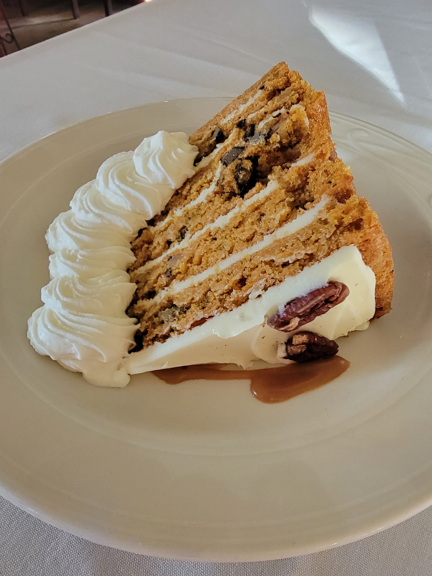 Too full for desert, but eyed the carrot cake as one was carried by…looked amazing, and plenty for two or 3 to share.