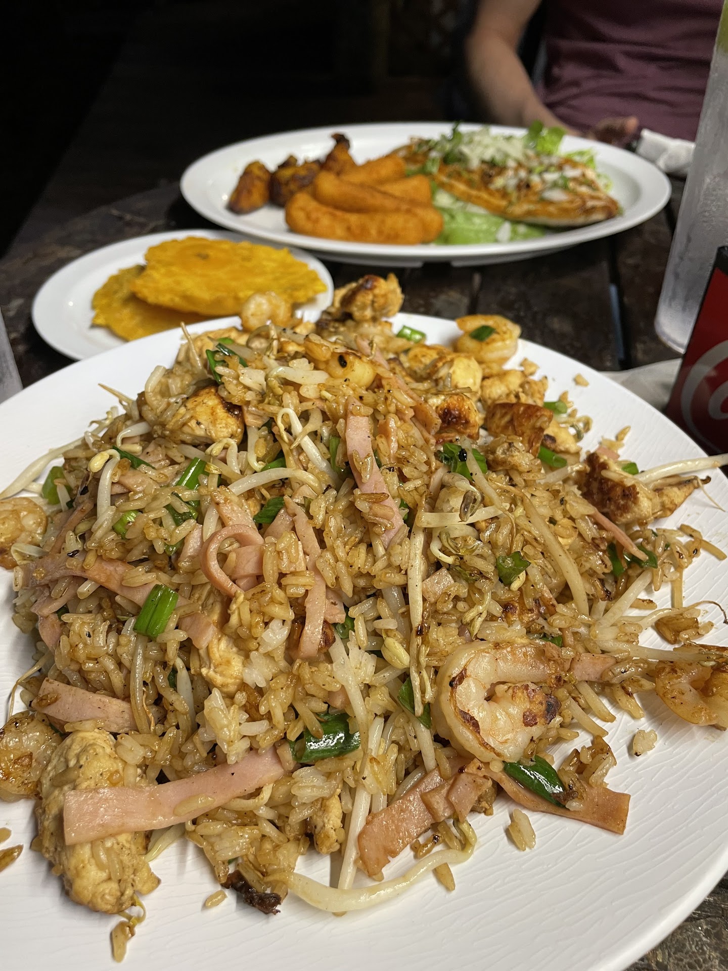 I came here because of the reviews and so Here is mine. Spot is a little hidden and the parking is uncomfortable, the outside seating was nice but once we walking no one greet us. We open the door and it was crowded so we ask a server that was taking care of a family if we could sit outside. She later brought us the menu. The main reason of my visit was 2 items the lobster (in creole sauce which is hard to find) and the paella. Once I ask of the lobster the server said no lobster available.... What??? All the signs on the keys advertised lobster season and no lobster. All right so I order paella and my husband shrimp tacos. The shrimp tacos were good in flavor but not impressive. The yucca fries and the tostones were really good but the paella was very far from what a paella should be. The portion was huge but the mussels were not cooked correctly since they weren't open. Also was way too much wet and was bland. There is a key ingredient in a paella and this one didn't have it....