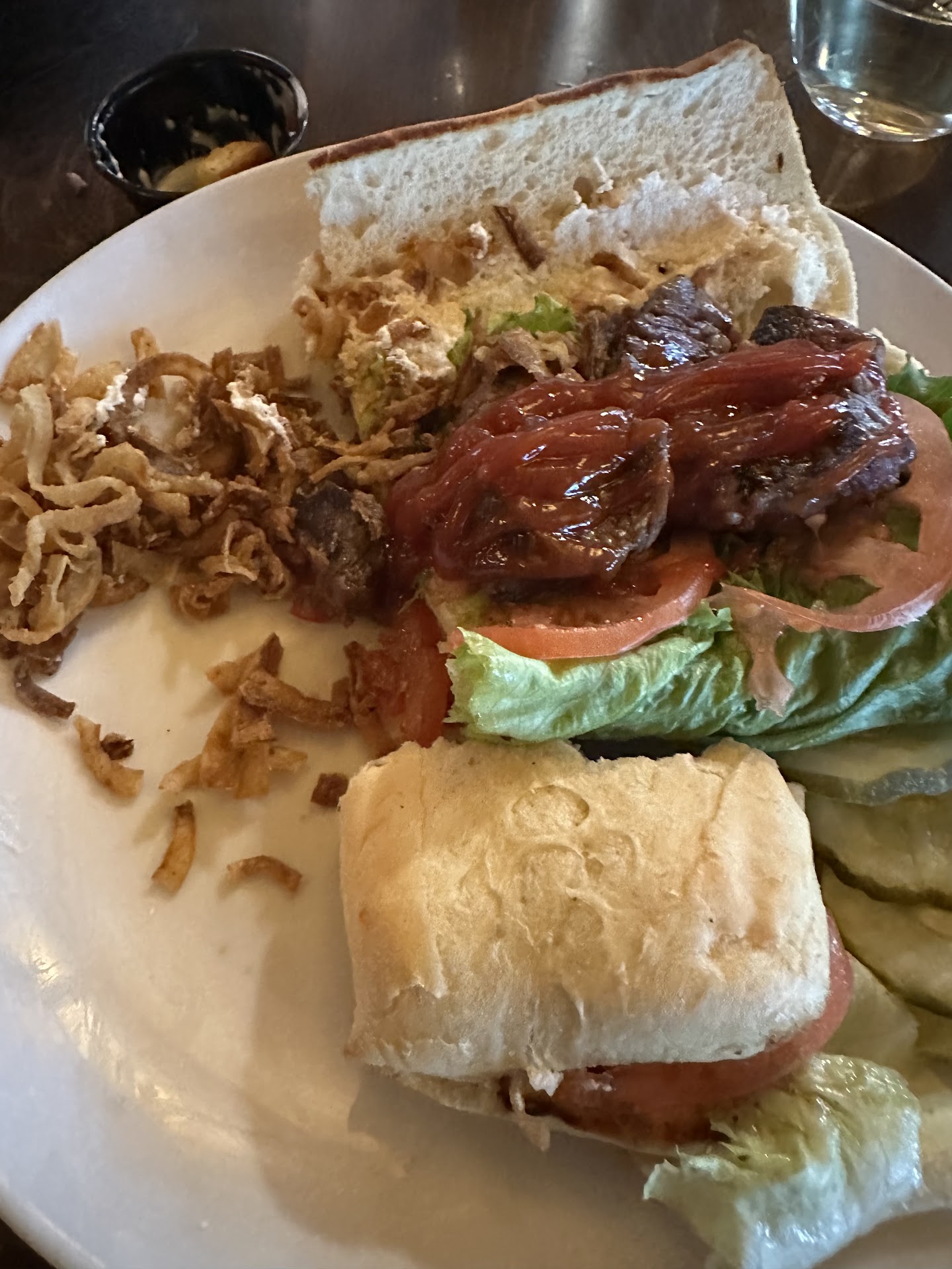 Read moreFood was good. Wife's steak was great, my bison burger was good, but it was missing the bacon that it should have had. This wouldn't have been a problem had the waitress come to us a single time after dropping off our food. Not once between when she dropped off the food and the 15 minutes after we finished our food did she even look at us, focused on the other tables it seemed. She passed by us for the table next to us several times, didn't even look our way. We sat there with our waters empty, and our meals finished for around 15 minutes before she finally approached us and asked if we wanted a check. Nothing more, nothing less, no sorry for completely ignoring is the entire time. So, again, we wait. Another 15-20 minutes for our check (this wasn't "customer time," I had been watching the clock the whole time). Another waiter/busser asked if we wanted refills, which we declined, since she should be back with our check any minute now, right? Nope. We got fed up with waiting and went inside to get our check ourselves. We passed her on our way inside and she called for i think the hostess to cash us out for her. First time in years that we've stiffed someone (it was a ~$50 order and if the service was even OK we probably would have left at least 10 bucks). I don't know if we just don't look like wed tip (we're a little younger than most other patrons there), but to blatantly ignore your tables without apology is inexcusable. TL;DR food was very good,...
