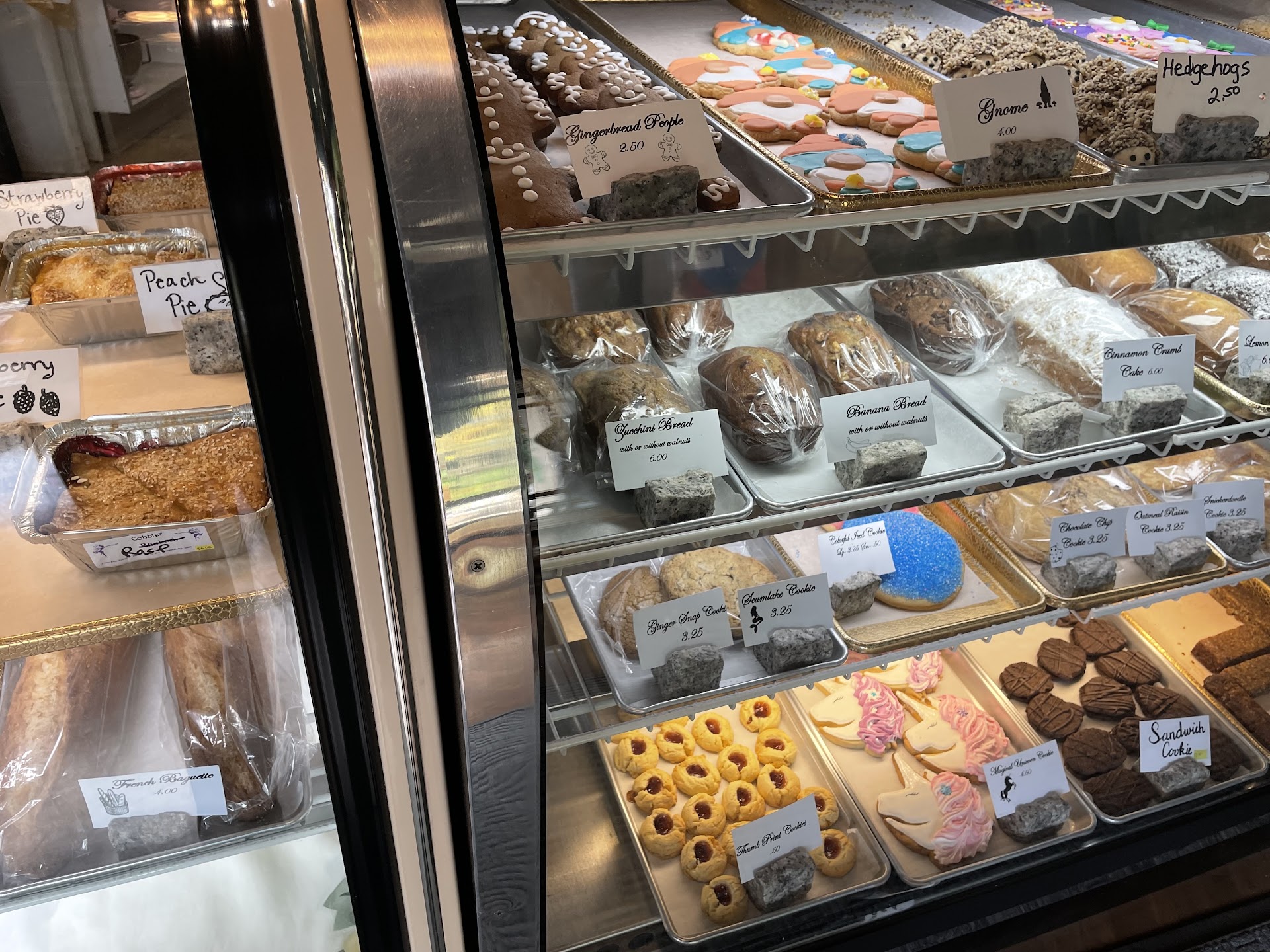 Cinnamon Roll with cream cheese frosting was fantastic. I see why they sell out quickly. The center is baked well and still gooey. Nice roll to frosting ratio. Snickerdoodle cookie was well made. The frosted sugar cookie was very dry and hard. Quite messy to eat! Decorated beautifully, but not much for flavor. A kid would not likely be able to tell the difference in quality. The gingerbread man cookie was classic, not very much spice or original flavor was present. Some bakeries try to make the recipe their own by adding additional spice or flavor (like almond extract) this gingerbread was mediocre.