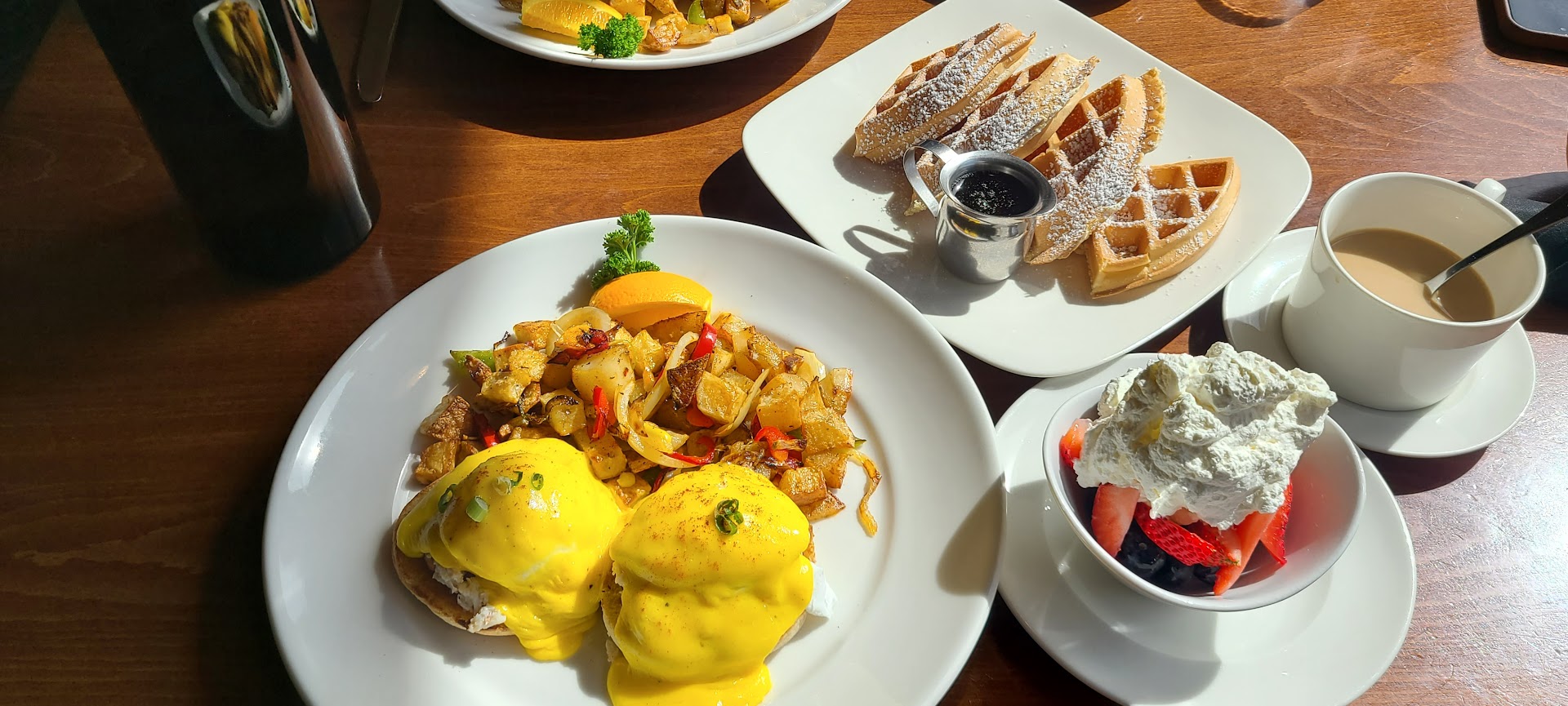At another table they got waffles, with which you can go to a fruit bar to top them with their handmade whip cream, and different berries. (Strawberries, blueberries and bananas).