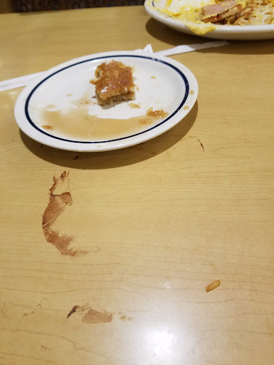I remember liking this place. Wanted to take my little sister on a date to movies and pancakes a few weeks ago. When we got here, we waited a long time to be seated, but someone who looked like they were the manager came and helped us to a spot. The first thing that was given to us was the water, which I just couldn't drink. It had this terrible taste that made me feel sick. I asked for a drink to replace it, which they did, only after trying to defend their "filtered" water. Next awful thing was they didn't offer a kids menu for my little sister, who was 11. It wasn't until after ordering did I bring myself to notice that kids ate for free. I felt cheated that we weren't even given the opportunity for something so generous. After asking about it, I was given the impression that it was to late to do anything about it. We were left with our meals arriving to our table with an upset feeling. So then we ate. I ordered avacado scrambled eggs. What a nightmare that was. The presentation of the dish was worse than any expectation. The whole thing was eggs, store bought salsa, and half an avacado. I can't remember what the name of it was, but it led me to believe it was more than 3 basic things for a large sum of money. Fortunately it came with hashbrowns and pancakes, but when those side items make up the better part of the dish, that's just sad. The menu needs a huge update. Slapping an avacado on some basic foods doesn't make any sense. Sadly, the pancakes were not at all as good as I remember. The syrup they leave on the tables for who knows how long was the only good thing about this visit. My sister decided to trust my suggestion and go for eggs benedict. Big mistake. I felt so awful because the hollandaise sauce ruined the entire dish. Even the ham which she loves was inedible. The only thing not touching the sauce was her hashbrowns, which was the only thing she could eat. She felt better after eating my pancakes I gave her. All I could think about was wishing I took her somewhere else that served quality pancakes. But wait, it gets worse. The brought out wasn't even served on clean dishes. After finishing what we could of our meal, I noticed how dirty our dishes were besides the obvious food that it was served with. I turned one plate over and it was covered with this gunk after realizing it was there after sliding the plate. I really just wanted to leave right then and not even pay (I ended up paying for my meal and managed to convince an employee to remove my sister's meal off the bill). The people working here are criminals. The customer service is the opposite of service. They dont serve you. Never eat here if you value...