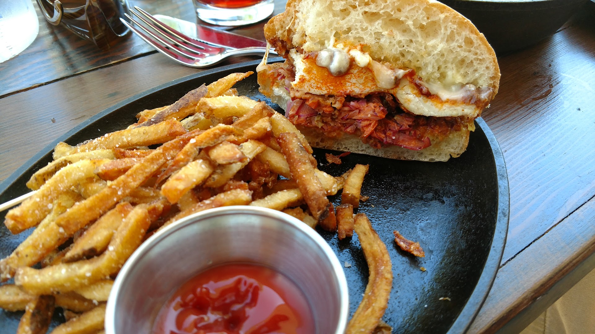 I visited this location with a friend during the streatery event that's been going on weekly. Firstly there was a bit of a wait which was fine but it took about 10 mins for someone to take our name and we weren't even given an ETA. We waited around for another 15mins and were eventually seated inside the restaurant. While I applaud them for using QR codes for menus during this time period I felt like the digital menu was horribly done. The layout was quite bad and was clearly not optimized for mobile devices. I ordered the french dip ($17) while my friend ordered the levitate salad ($12) and pub fires ($9) which totaled $38. I had three beers ($7/each) while my friend had two mixed drinks ($12/each) which totaled ($55). Personally I felt like some of the items were overpriced ($9 for a basket of fries is ridiculous. Realistically this should be a $75 meal). While the food wasn't bad it also wasn't worth some of what I paid. My french dip seemed rather average with the best part being the Grand Central baguette. The roast beef seemed more dried out than it should be. I also asked for a side salad instead of fries and it seemed barely present on my plate when I was served. Our waitress was great and checked on us about a dozen times and was prompt when closing out the bill. Overall with tip the meal cost me approximately $125 but I don't really feel like the food or experience measured up...