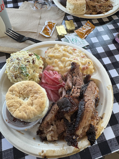 Read moreAs someone who grew up in the town that hosts the international BBQ fest every year, I know that this place is not the traditional style BBQ you'll find in the Midwest/South. But that doesn't mean it can't be appreciated for what it is! Sure it's not a traditional style but it is delicious regardless. Got the brisket and the pulled pork. Both were great but I preferred the brisket. It was a shredded/chunk style rather than the sliced brisket I expected but that's ok. The meat was tender and juicy. The fatty pieces gave it richness. The sauce was flavorful. The mac n cheese and baked beans were great and were such a compliment to the brisket. I wasn't personally a fan of the potato salad or mac salad my husband got but honestly I'm never going to prefer any deli salads over a good mac n cheese with pork n beans. The meal was hearty, filling, and very reasonably priced. Bonus points for actually having sweet tea!!! Staff were very kind as well. I personally prefer cornbread over a biscuit but I'm still gonna give it 5 stars because I would totally...