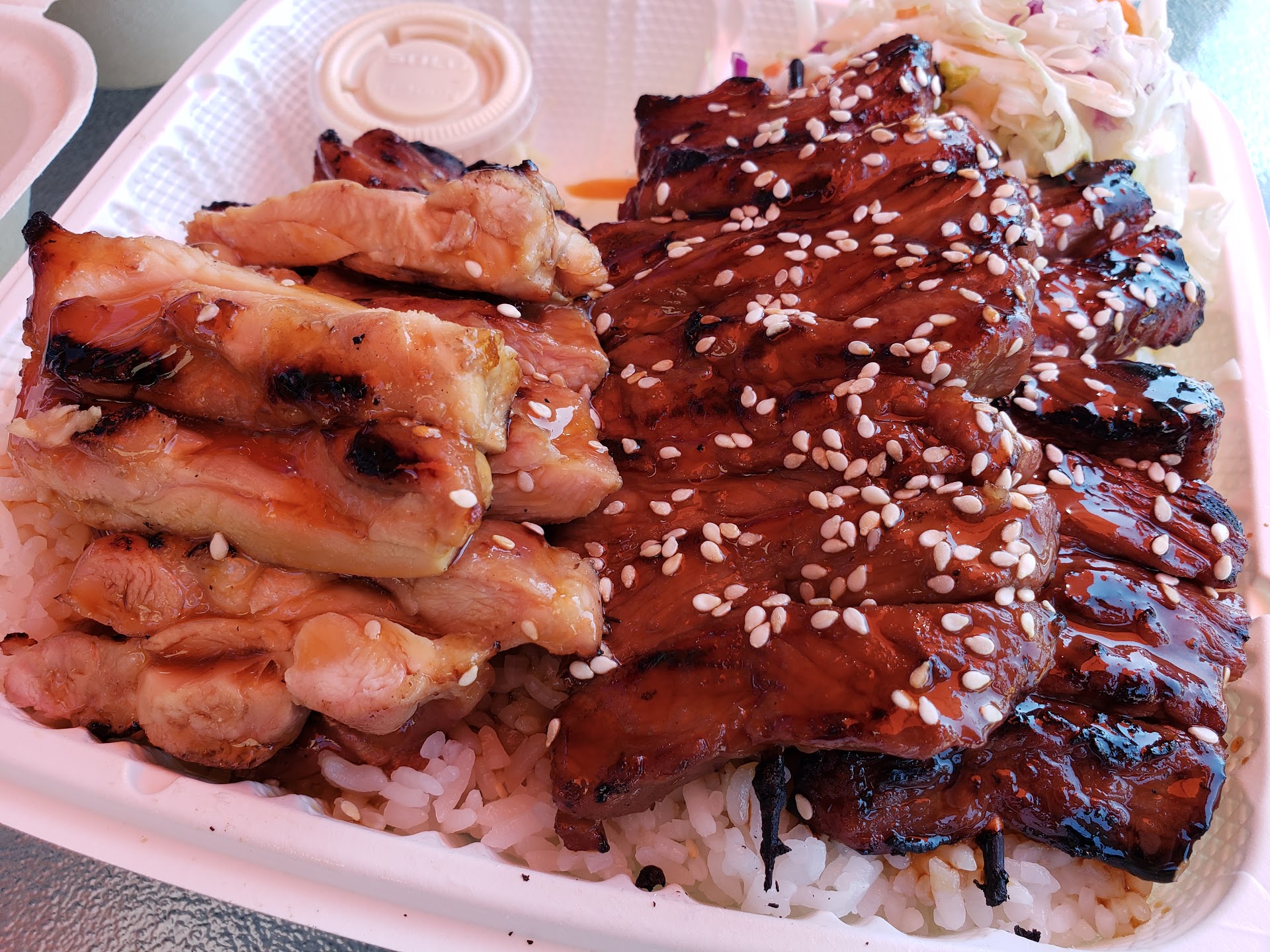 As I've tried all their dishes over the past 15 years, I can personally comment on almost all. My "favorite" dish is Super Combo #4 (Beef Teriyaki + Teriyaki Chicken). The portion of the food is big enough to fill anyone's stomach. Both beef teriyaki and teriyaki chicken are tender, juicy, and delicious with grill taste. The salad on the side is fresh and perfect with their very addictive sauce. Their food typically comes with 3 different sauces - teriyaki, creamy garlic, and spicy garlic sauces. I even bought 18-oz bottles of both creamy and spicy garlic sauces for $6.50 each, and my family often applies the sauces to any combination of foods from sandwiches to salads.