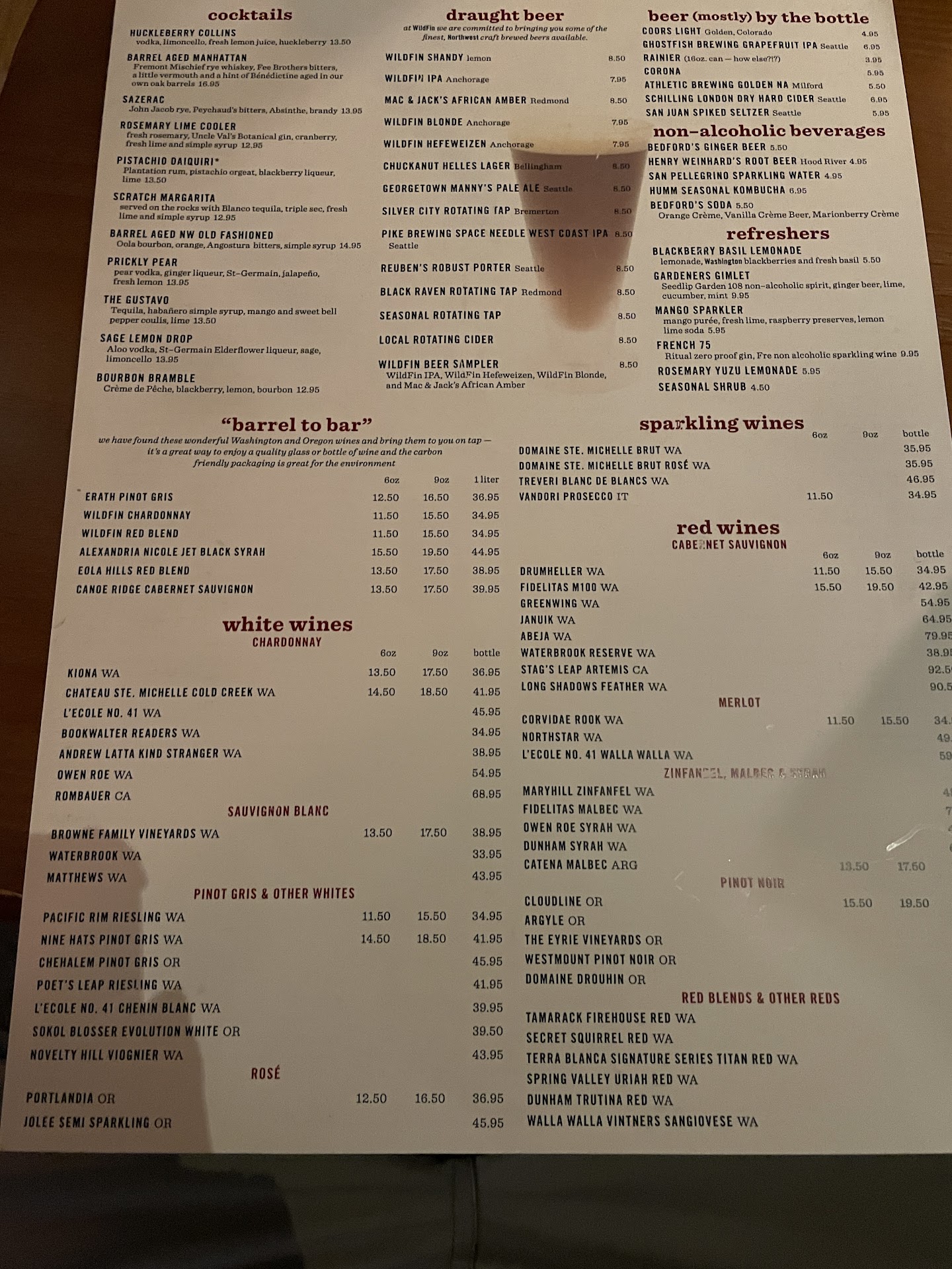 The booth we were seated in was comfortable, and the restaurant's interior continued the wilderness fishing lodge theme, tastefully done. After reviewing the menu, we placed our orders. She ordered the Rosemary Sourdough to start, along with iced tea and the Halibut. I chose the beer sampler and the blackened ahi cooked to a medium temperature. The assortment of beers was pleasant; while none were particularly bold, the house blonde, hefeweizen, and IPA were delightful.