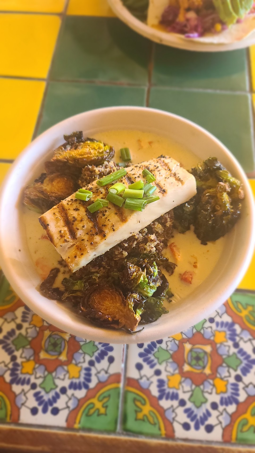 Read moreHeard great things about this place so we stopped here for lunch. Great atmosphere, awesome surroundings, friendly staff, delicious looking menu. All this lulled me into ignoring my personal rule (never eating seafood more than 3 hours from the coast) and ordered the lunch special, fish and chips. Deep fried battered cod and chips. The FnCs came out and even before it got to the table it was immediate disappointment. 🥺 The batter was very thin and not fully covering the cod fillets, which allows the hot oil to remain in contact with the fish and instead of sealing the moisture in and steaming it. This allows the moisture to quickly boil out of the fillets and is more akin to hard fying in a super hot skillet which causes the fish to become chewy and not very pleasant to eat. The second disapointment was the fries, a simple error in that the fish was served ¼ inch cut fries. Although they were cooked beautifully, with the right crunch and the perfect golden brown, the fact that they are so thin means they not only hold a lot of fry oil per chip but (and this is the important part) they go cold very quickly and dont help with keeping the battered fish hot. So not only do you get cold fries you get cold fish too. This is why FnCs are sold wrapped in paper in other parts of the world. Im no foodie but being from New Zealand and growing up on fresh seafood this meal was on the low end of average, not terrible but a lot of room for improvement. All that said the Tartar sauce was delicious. So to sum up. Use ⅜ inch cut fries even steak fries, yes they will take longer to cook but the payoff is worth it, and make the batter a lot thicker with a nice malty beer for the the emulsifier. This will make even frozen fish taste delicious. Ask...