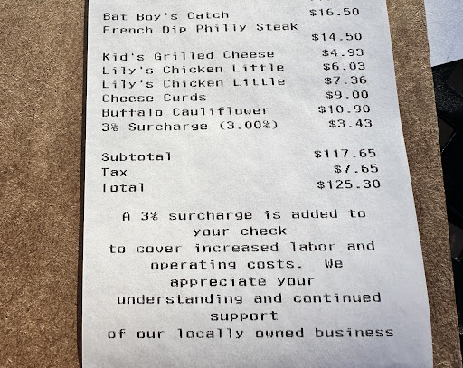 Read moreMy wife and I decided to eat at 3 Brothers Corner Tavern for a late lunch while our daughter was at a birthday party next door. My wife ordered a hamburger that may have been decent but nothing spectacular especially for the price. What ruined the meal was that the burger came on a cheap bun that quickly turned to mush. When a manager asked us about our meal I mentioned that the bun was really substandard for the burger. He laughed a little then replied that they had ran out of buns the previous night and had to buy some at the local store and they were just trying to use them up. I good restaurant would have at least bought decent replacement buns from the store instead of the cheapest ones and they would have used the proper bun as soon as practical. When we pointed out the problem I would have expected at least an apology but I guess food quality is a joke. Even if the food was better I just felt the restaurant didn't live up to the décor nor the atmosphere they seemed to be aiming for. I would go to 3 brothers again if a group of friends wanted to go but I wouldn't go out of my way...