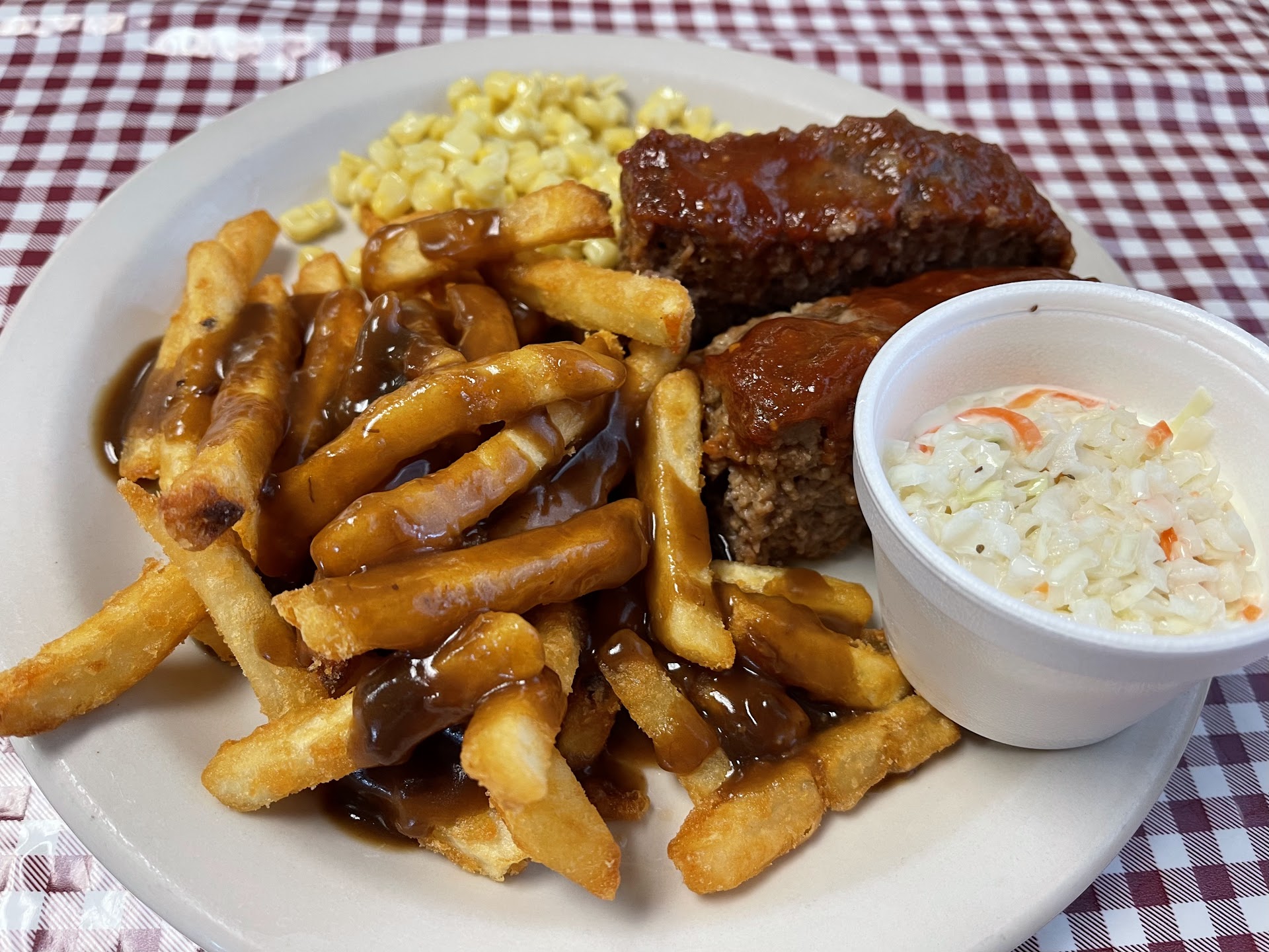The food is not bad, especially for the price. I usually order a salad with some fries (curly!) added on top... really tasty. Not the wildest ingredients, but good and generous. The sandwiches look a'ight too. And there's always some pizza slices swinging around in a hot thing, too, and depending on how fresh you found them, they can be pretty good (or not). It's a neat place. You can sit down at one of the checkerboard-tableclothed tables, or take to go. Real silverware is an option for eating in, which is nice, and you pick your food up at the counter, so no need to leave a tip necessarily. There's also a standard variety of convenience-store packaged products, a decent selection of beverages and snacks. Some fun oddities like history books about the area are also around. Plus, I noticed recently there's free wifi (no password needed) -- a really nice feature for this area with poor or no reception. There's an ATM as well. I would come here all the time if I lived closer to...