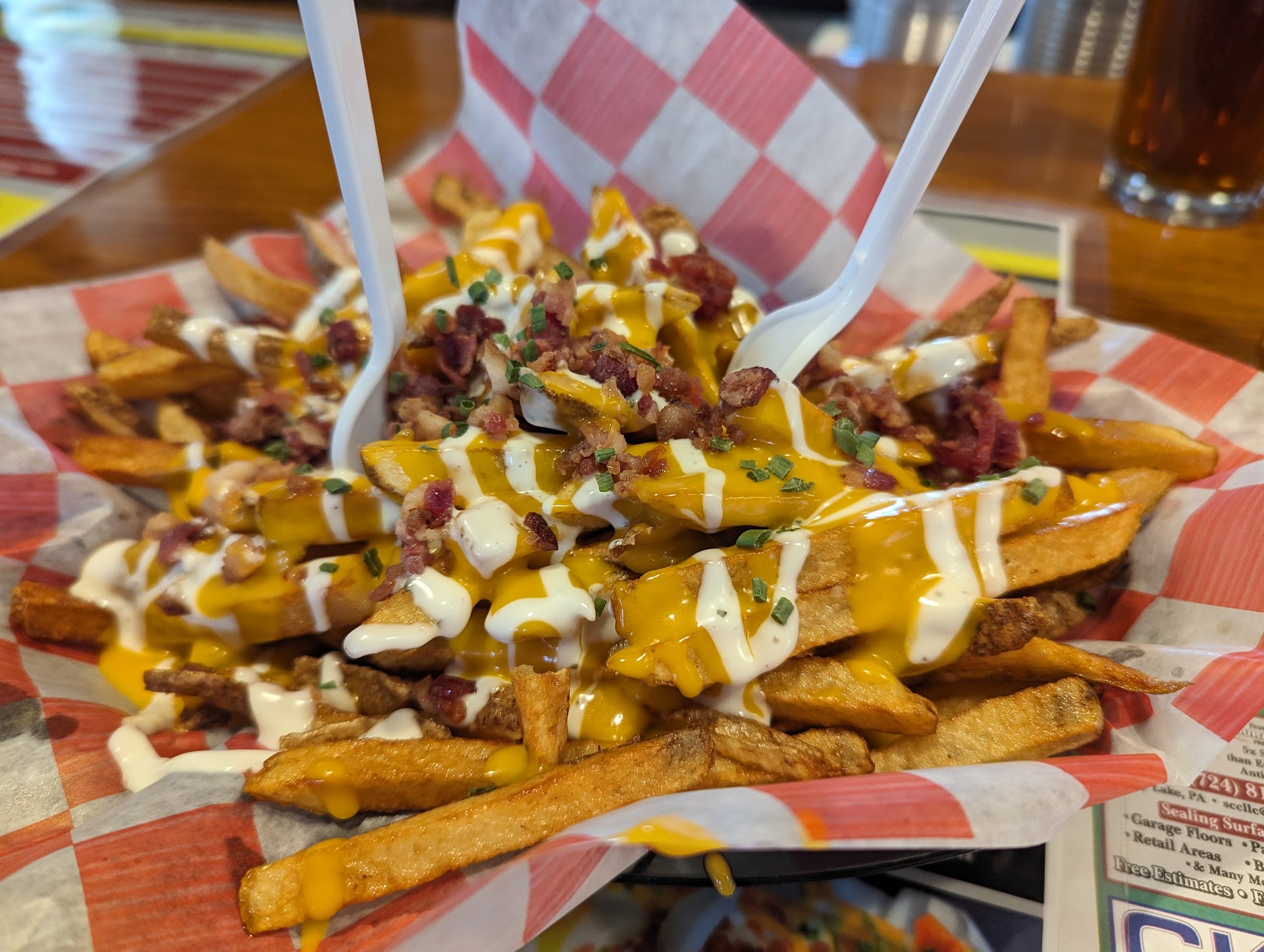 This little jewel in BFE is worth the drive from near anywhere. It's close enough to the outlets in Grove City, to warrant advertising there, and better than any burgers at the outlets. My Big Fat Greek burger was about as close as you can get to a gyro, without gyro meat(and I suggested it). It was fantastic, and their seasoned fries are worth all the hype. I can't wait to try the wings, which are made differently than most other places. The selection of local libations is a refreshing change from most other pubs, that only carry the popular drink and brews. The staff are all locals, as they should be. The building is dated rustic, but who cares?? Go in your Sunday best or work...