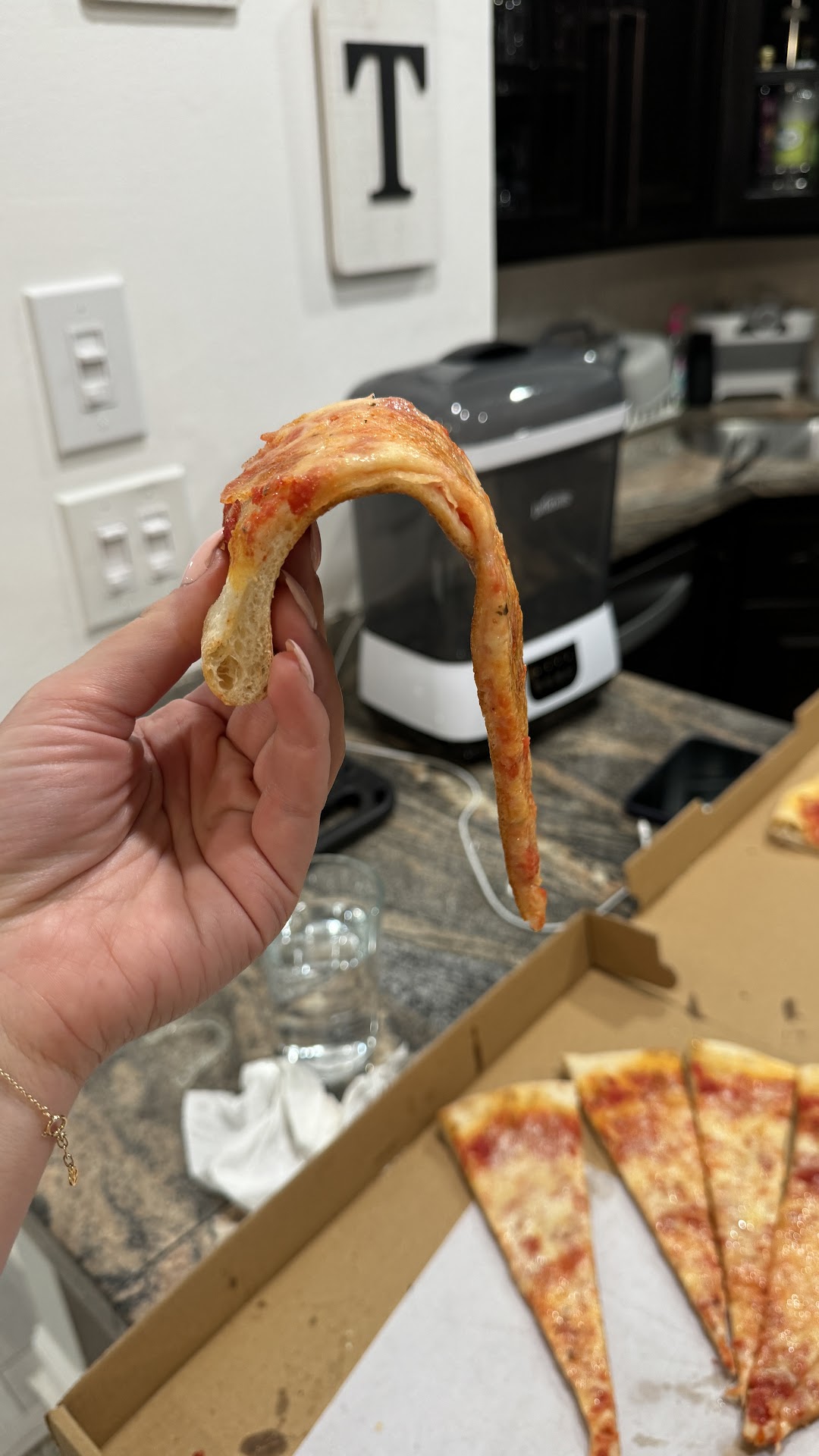 Tonight I call up and place an order. I get to Inzillo's, park, and walk in. Mike grabs my order and rings me up. I think nothing of it because I ordered a small garlic and bacon calzone (a usual for me; an amazing combo) and it smelled exactly like it normally does (like bacon and fresh garlic). I get home, put everything on the counter, get squared away, and come back to get the food ready. I open the box and...