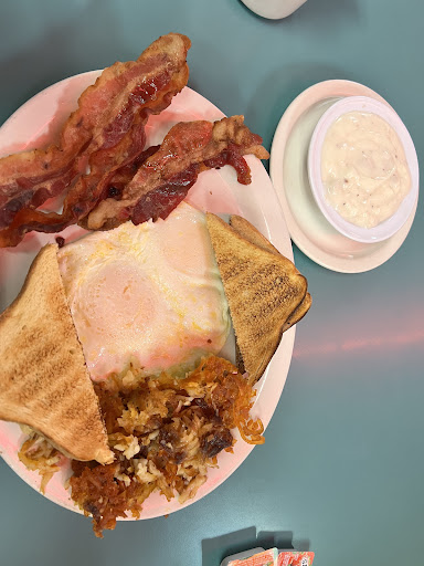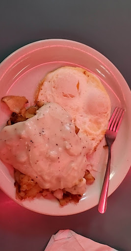 The sausage gravy was cold ( she warmed it up but it was still cold ) the bacon was rubbery and my second piece of toast was burnt. The server wasn't nice at all from beginning to end. I don't know if she was having a bad day or I did something but overall not a great experience. I’m thinking bad day because of the medical boot and having to work.