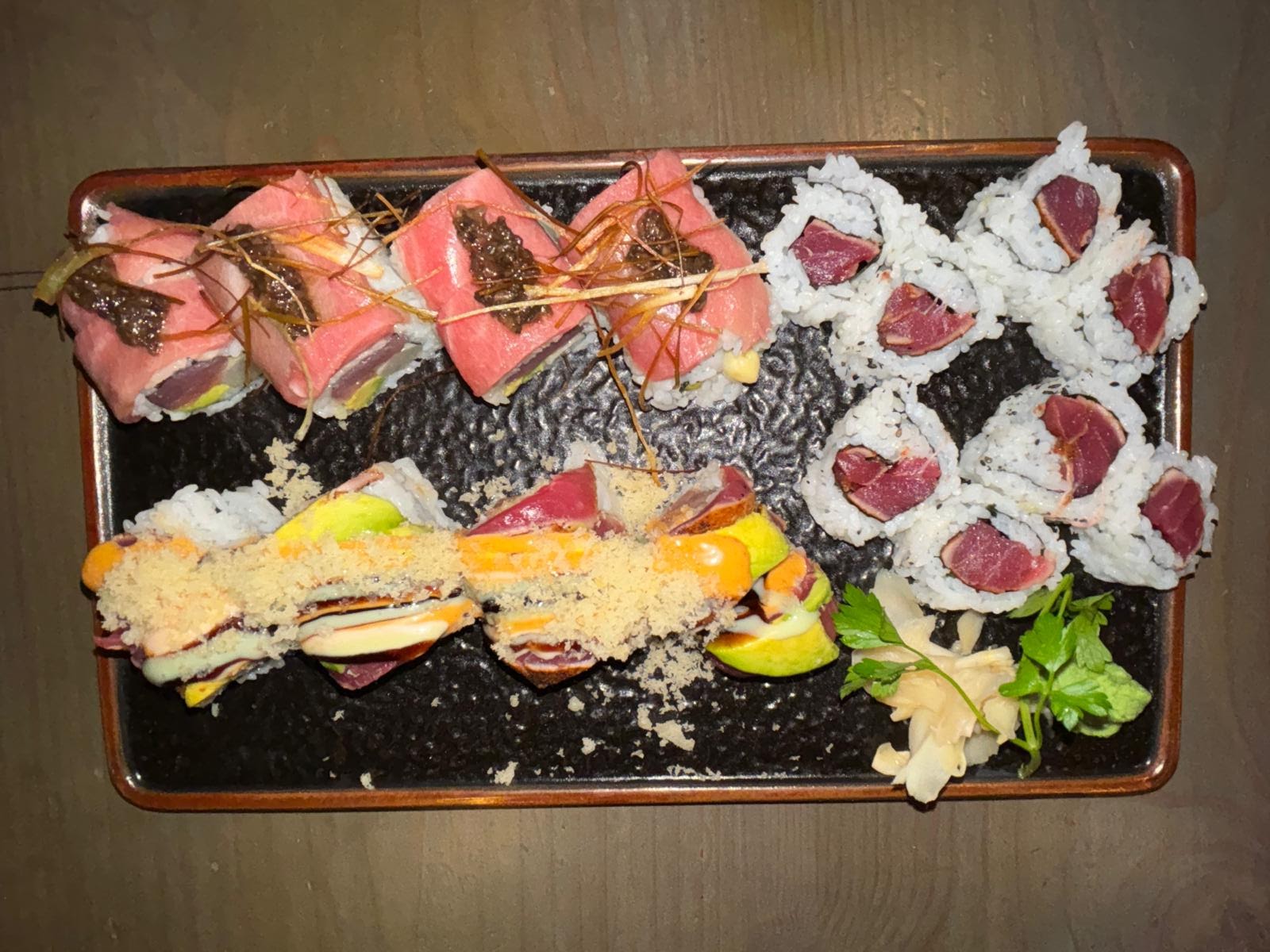 Besides the full Nori and Sashimi options there were sushi appetizers, Kalamata specialty rolls and Poke Bowls. For appetizers we tried the Rice Wrap Veggies which was a rice paper wrap with lettuce, cucumber, avocado and mango topped with a mango sauce. It was fresh, crunchie and vibrant, seriously good and great if you want a no rice option. We also tried the Kalamata Crispy Rice with spicy Tuna. The rice was crispy on the outside and soft and almost pillowly on the inside seriously delicious. We then went with two Kalamata specialty rolls suggested by our server. First we had the Otoro Lux Roll which consists of pepper crusted bluefin tuna, asparagus, avocado topped with Otoro and get this black truffle and crispy leeks. The black truffle and crispy leeks were amazingly flavorful add to that the Otoro, tune and asparagus and it was a one of the most decadent rolls I think I ever had. So flavorful and so many textures. I also ordered the Red Dragon Roll which was spicy tune, crunch, topped with pepper crusted bluefin tuna, avocado, drizzled spicy mayo,sweet sauce and wasabi sauce. This was to be my second favorite roll after the Otoro. The fish was as fresh as can be as can be seen in the pictures below. Great color and marble on the fish and so fresh and tasty. We rounded it up with a regular tuna roll just to taste the fish itself without any sauces etc. It was so yummy. Lastly because we were running late we took a Poke Bowl to go which you can choose anything you want from the menu.