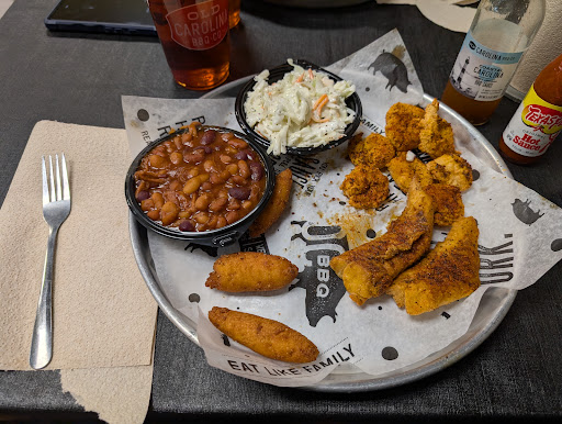 Read moreI stepped up to the counter to place an order. I asked the girl behind the counter for an explanation of the upcharge for side dishes. She said that if the meal came with a side dish that it did not matter it came with the dinner but then proceeded to up charges for premium side items. I got a bill for over $30 for 2 meals when we knew it should have been under $28. When we asked about the total she snapped at us and said that the drinks were $3 a piece and the sides were a three-dollar each. She canceled the order and we put the order in with regular sides. I paid the bill and as I walked away we heard her say all that over a couple of bucks with the rest of the employees standing and laughing. We sat down and ate our meal and I noticed that the girl keep walking out from behind the counter staring at us and then walking back behind the counter I'm sure she was making faces behind our backs. In her Haste to take our order she didn't even get the order right. I ordered the chopped brisket not the pulled pork but there was two pulled pork dinners in front of us. I asked to speak to the manager after we completed our meals. They gave me somebody who took barely older than the girl that was so rude with us. All he could say that when he was sorry and it wouldn't happen again to whatever I said. I told him we had I have old Caroline in Akron where I live and I will never be back to this one again.And again he half heartedly apologized. If you like teenagers being rude with you you'll love this place. I guess it's pretty hard to get decent employees these days I guess this proves it. Unless you like being mocked by the staff l don't think I would waste...