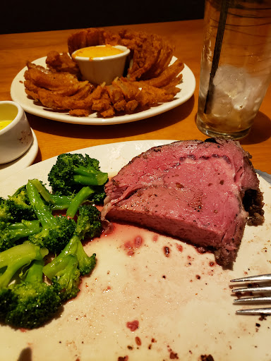 Read moreThis was my first time at Outback and I'll never return. We called ahead for a table and got seated instantly which was great. Since it was my first time there, I just HAD to try the blooming onion! It got served to us deconstructed on a plate. Just pieces of onion deep fried as well as raw seasoning that was also just tossed on the plate. The taste was worse than the presentation, believe it or not. The amount of salt was unbearable. After my family tried to enjoy the blooming onion, we couldn't even bring ourselves to find enough water to cleanse our pallet. Luckily, the waitress brought out two loafs of cold bread, yet the bottom was so stale or overcooked (hard to tell) we couldn't even cut it into slices. I ordered a beer to hopefully help get me some sort of relief, but it was empty well before the 49 minute wait for our main course to come. I ordered the prime rib. Thick, juicy medium rare prime rib with some nice dipping juices sounded great! What i was served was the thinnest cut meat I've ever seen, and so dry you could shingle a roof with it. After pouring water on the sandwich and dipping it in ketchup for any sort of flavor, i pushed it aside. My daughters chicken fingers were WARM not hot, so who knows how long they sat out for. My wife's chicken sandwich was so dry she needed a knife to cut it, but it had so much salt on it, she didn't finish 2 bites. We had full intentions to get dessert at this restaurant but after the main course there was no way we could even trust them to scoop ice cream the right way. The waitress did fantastic, and her service was great. As for the standards and quality of the food? Id rather stay home and eat...