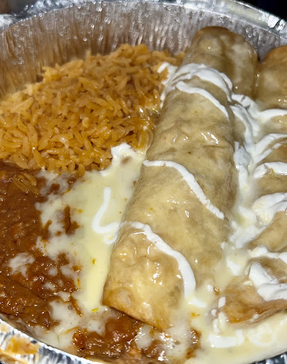 I tried the SEAFOOD CHIMICHANGAS it came with Two flour tortillas, fried or soft with shrimp and crab meat drizzled with cheese sauce, lobster bisque and sour cream. Served side of rice and beans. I got double rice instead of beans. I also added chopped steak on top of the Chimichangas.