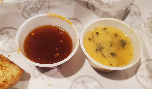 Read moreMy own personal opinion is that I believe this place is overhyped. See all kinds of signs about how fresh the food is, and they make it visually appealing. I'm not sure if it was because my kids and I got there later in the evening, but the food was definitely not fresh. I ordered some wings and fries, my son ordered chicken and waffles, and my other son ordered a classic chicken sandwich. The classic chicken sandwich was the winner of the three items I purchased for us to eat. The wings I ordered were tepid at best and the fries chewed like they were sitting in a heating tray for an excessive amount of time. I can only imagine it was probably the same with the wings. I asked the cashier for mild wings, but she looked at me puzzled as if she didn't understand what I was wanting. She couldn't even suggest anything along the line of mild hot wings. So I just went with garlic parmesan. The wings were full of broken bones, but the sauce was not too bad, and at least the wings were meaty. Even though they were not fresh and more so on the colder side, I still ate them, because... well, I was hungry. My son said the chicken and waffles were okay, but he had a hard time cutting through the chicken and waffles with a plastic knife... Yes the serveware is plastic. My other son smashed his classic chicken sandwich with big smiles. He said it was delicious. However, the only hang up were the fries were warm and old. I'm sure I'll be back again, and that'll give me a better perspective of how the food is. But for now, I can say that I wasn't...