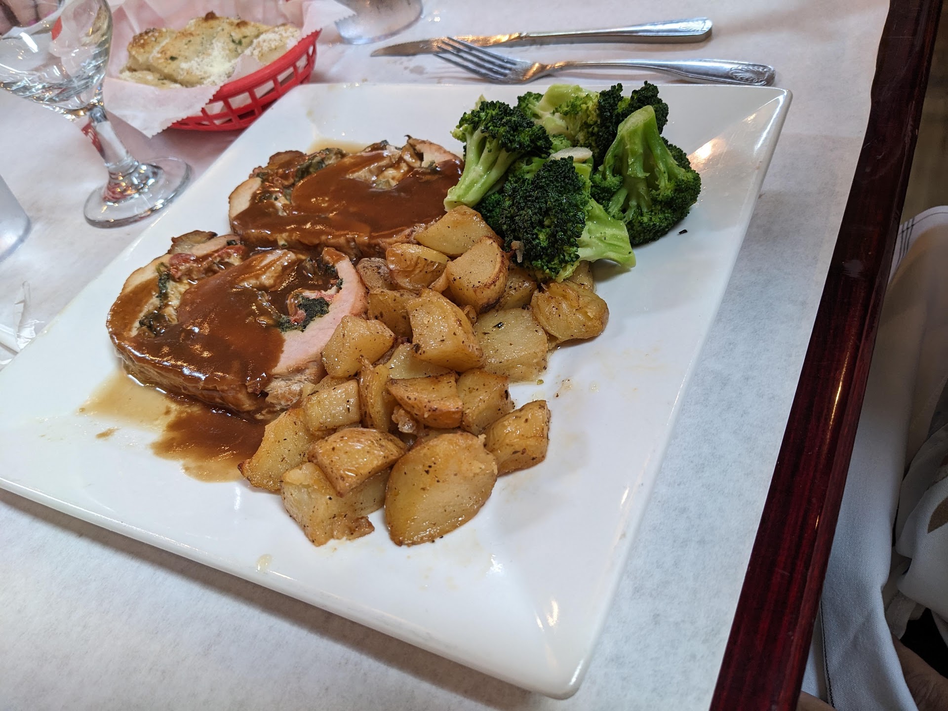 Read moreI came here for lunch 2 years ago and it was amazing. My parents and I made reservations for 6:15. I love starting with the incredible bread basket. We ordered our drinks and asked what the soup of the day was. It took a long time for our drinks and a response. Eventually the soup was ordered and arrived. We chose a chicken Caesar salad, the rigatoni siciliana with ricotta and eggplant, I ordered the tortellini off the baked pasta section of the menu. Our waitress was new and it seemed that she was still learning the ins and outs. She walked around the dining area many times, but it took many trips until she took away the plates from the soup and the bread. Then we waited forever for our food. It didn't come out until 7:20. I didn't expect to be at the restaurant for over an hour waiting to eat. We watched tables all around us get served before us. The salad and rigatoni were delicious. The eggplant and ricotta really complimented the dish. Unfortunately, the salad only had 4 croutons. The tortellini was very mediocre. It was not baked as I expected. Instead, it was in a large bowl with watery tomato sauce. I regret not getting pizza. We got our check and waited a while until the waitress came to take the credit card. The service was so incredibly slow, I think I'll stick to lunch when it's...