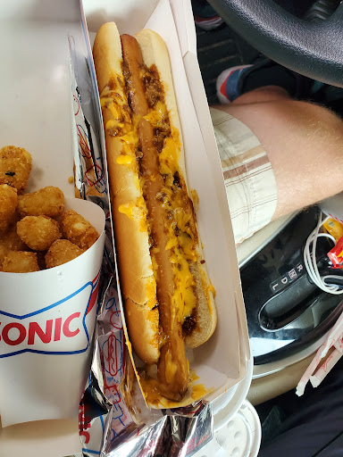 Read moreLine was wrapped around the building and Iâm not surprised due to the launch of their new pickle meal and thatâs why we were there. The line moved pretty quickly which is the only good thing about this visit. I didnât get the right side I asked for tater tots got french fries not a big deal both potatoes I asked for the ones that come with the pickle meal didnât get those got the plain french fries couldnât even really go back around or knock on the door because it was so busy you couldnât park anywhere because the parking lot is so badly done that youâd get blocked in no matter where you park. got home burgers are a mess. I loved sonic growing up this sonic has kind of ruined sonic for me because every time I go there there seems to be some type of issue. most of the issues are little or not a big deal. The only problem with this time is that I was really looking forward to trying these items and I probably wonât go back just because of the distance and the inconvenience I...