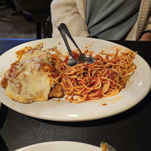 Suspenseful Music Play Enter the entrees... Shrimp Scampi is first to bat. Let's begin with they are labeled MP for a reason. Never have I seen a shrimp so big! Then you see a whole tray of these colossal beasts! Flavor wise WOW! Both rich but also light. Totally worth it Enter second entree... Veal parmeasan! I will 100% order this and look for restaurants that serve it. The best Veal Parm I have had ever. Multiple states and countries worth of travel, this is the best.