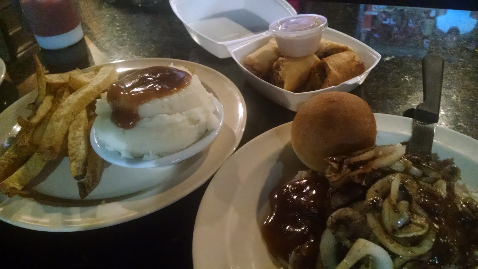 Really wanted to give a 4.6. The burger was absolutely delicious. Seasoned to taste. Even the fries were good, so thatâs a plus. Southwest eggrolls . A must have. Ordered the Philly cheese sandwich⌠a little greasy, but ok. Eggrolls, still the best. However, another day, ordered the Philly cheese and it wasnât so great. This was beyond greasy. And the fries were not the best. Forgot my drink and just wasnât happy this go around. Thank goodness for the salt packets. That helped with the fries. To me, itâs still a must try. Hopefully you will get what I received on my...
