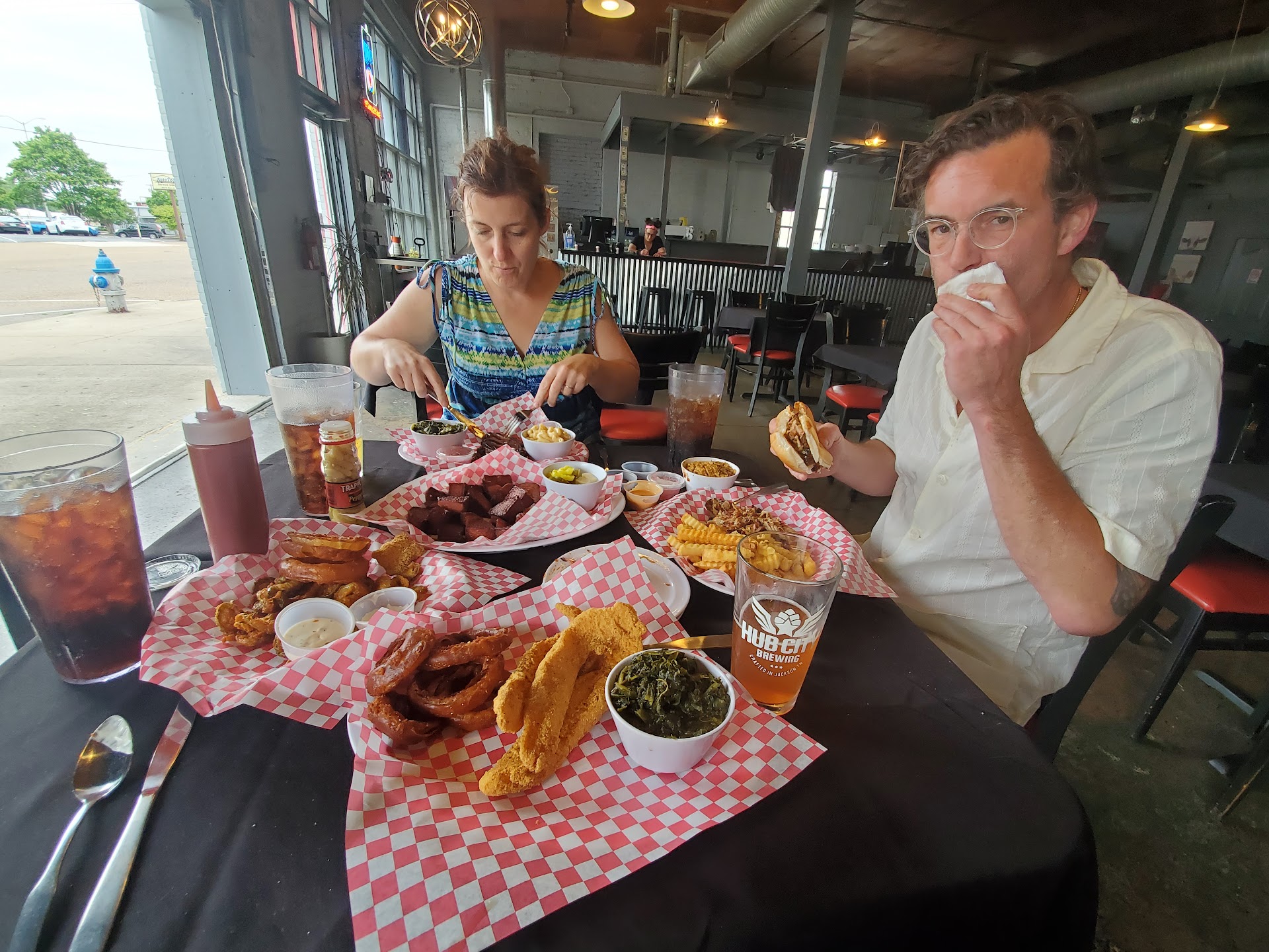 Read moreTalk about being disappointed. This was my second visit to Baker Bros after the first was the exact same experience as the first, but I just knew it was an off night so I went back hoping for the real experience; and boy was I wrong. The location setting is âdowntownâ If thatâs what you want to call Jackson having as you are always ten minutes away from everywhere, but itâs in a good spot away from the hustle and bustle of north Jackson. However, we walk in on both occasions, and we were the only ones eating in on a Saturday night đłđł. The food was very disappointing. Not from a flavor stand point but certainly an amount. The pick two platter is priced at $20, but there are options at a tick below but all above $15. I chose the brisket and pulled pork as my two options. Baked beans as my side (normally wouldnât put, but relevant here later). I got one slice of brisket (not hearty) that probably measured 3oz, and a spoonful of pulled pork probably right at 3oz, but Iâm thinking just below. So if weâre being generous 6oz of meat for that price. Then the baked beans, oh the beans!!! You got a cup of beans (by far the most generous offering) but an offering that comes out like molten lava. Iâm not talking garden variety hot, Iâm talking about no steam on top hardly because itâs consumed below, you take a bite and then you realize youâve just swallowed your own piece of historic Mt. Saint Helens, praying your taste buds will heal by 2024. Dear baby Jesus they were hot đ„”. The service was just as bad, the one server just kind of sits and looks at your table and we even had to raise our glasses to get a refill. He certainly wasnât interested in being the self starter type. After both visits and the offering we received, the place is a no. Especially with no other customers there either, we can see why. In hindsight, it looked like a creepy scene out of a movie where theyâre peddling something out of the back, but this gets...