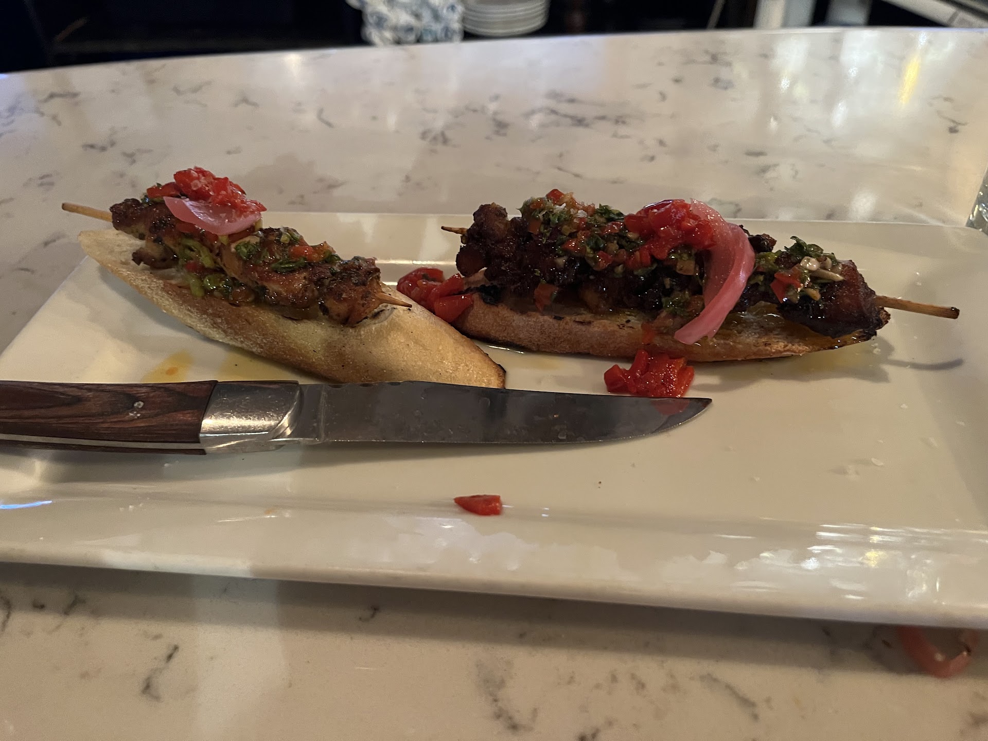 The chicken pintxos was delicious! It was a bit on the oily side but the chicken was really well marinated and cooked. The only thing here is it was tough to eat the chicken off the skewer on top of the bread.