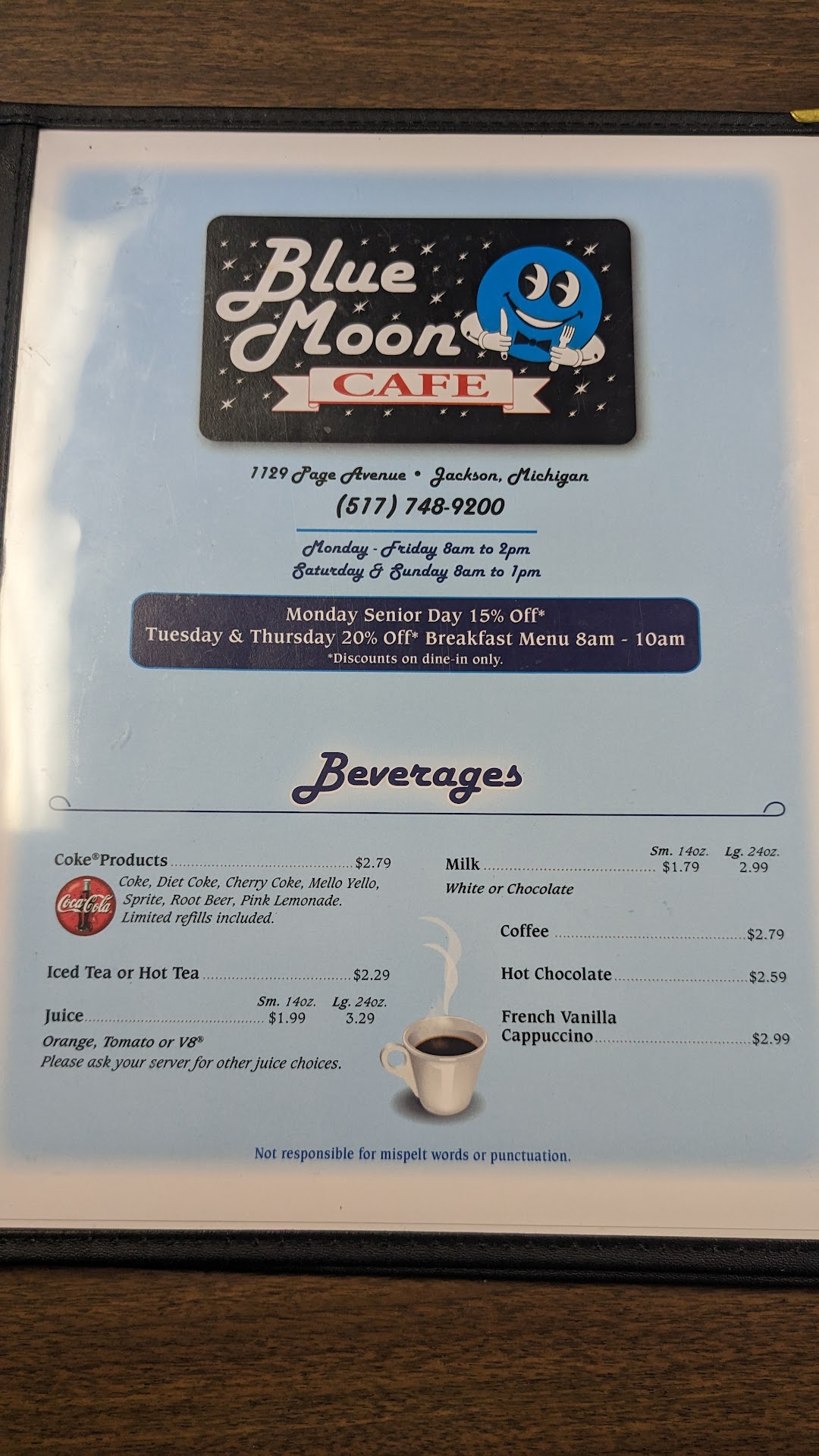 Read moreWe stumbled upon Blue Moon Cafe while rail fanning. When we walked in, I didn't see a sign indicating if we should seat ourselves or wait to be seated, so my son and I stood near the door. The woman ringing up a guest said "uh, you can sit wherever you want." We took the table nearest the door so my son could see the trains outside. Two separate tables came in after us. The first table was promptly given menus (from the lady who "greeted" us at the door) and asked their drinks. She delivered their drinks then went to the second table that walked in after us. She did not bring him a menu, but called him by name and asked if he wanted his usual beverage. She trotted off to retrieve his drink as my son and I sat there still waiting for any acknowledgement. After my 8 year old noticed the people who came in after us were being serviced before us, he asked, "what the heck!?" Which was my thought exactly. We...