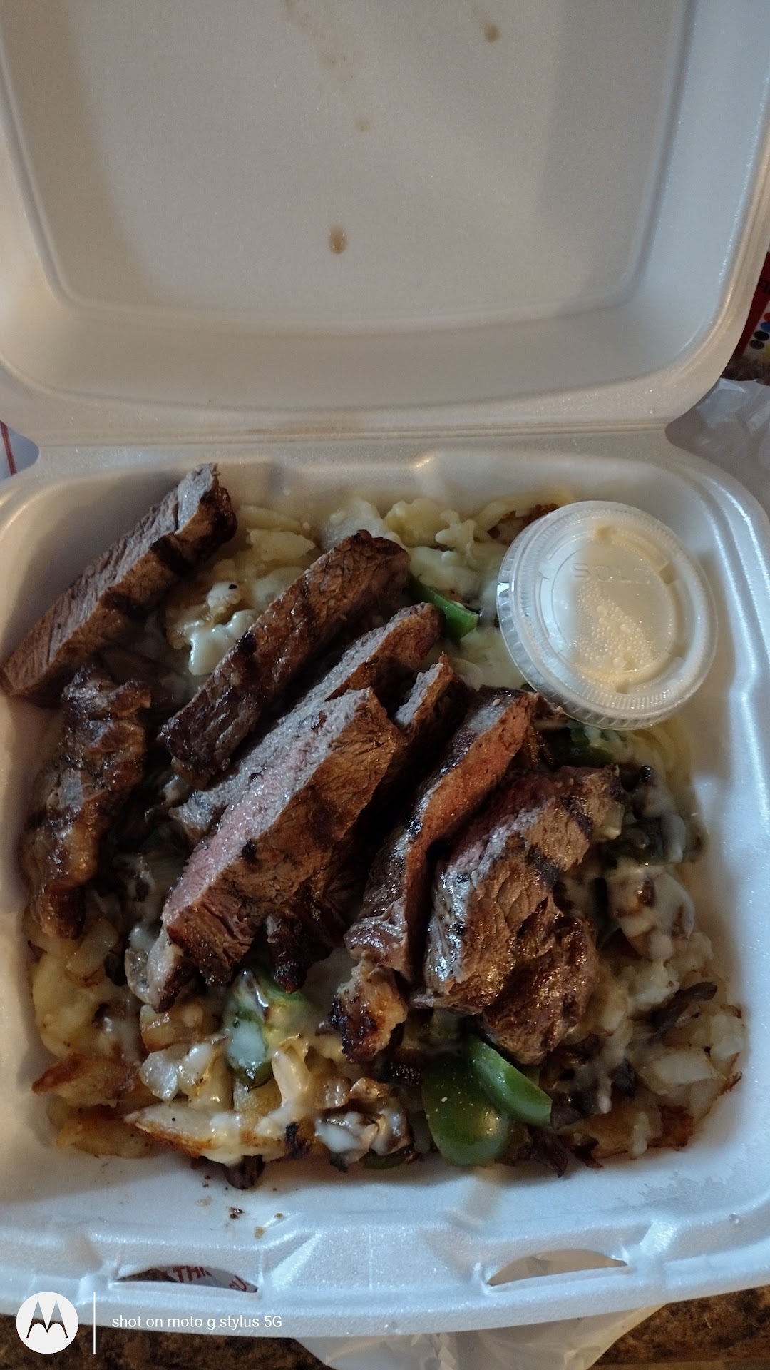 My meal came right out, and everything looked amazing. The beef was tender, and the gravy tasted good, it needed a little salt, but other than that, it was good. The American fries were outstanding. They were really good with gravy on top.