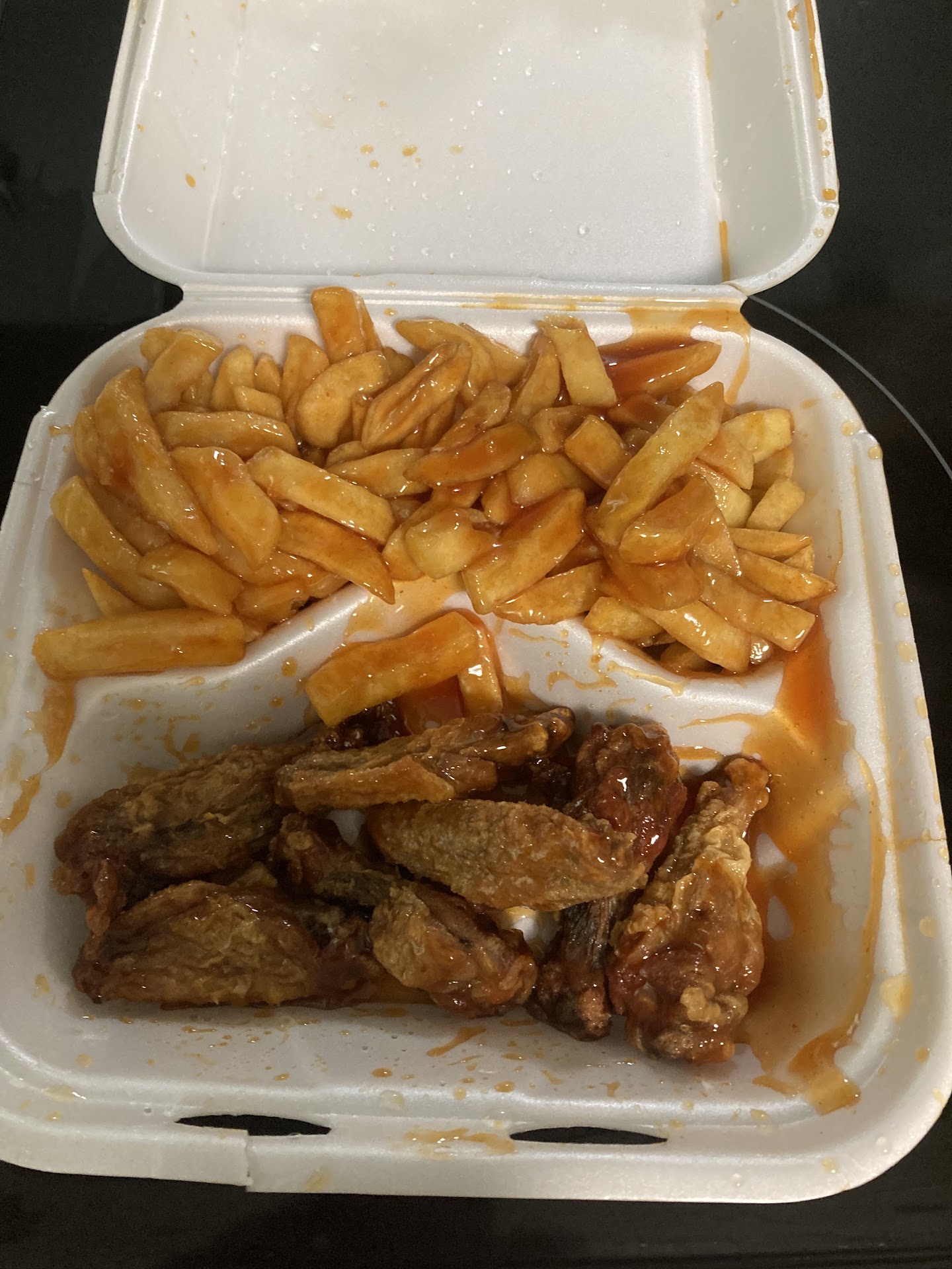 But that's not all - the surprise addition of sauce on the fries took the experience to a whole new level. The fries were perfectly crispy, and the sauce added a delightful tanginess that perfectly complemented the heat of the wings. The combination of flavors was a match made in culinary heaven!
