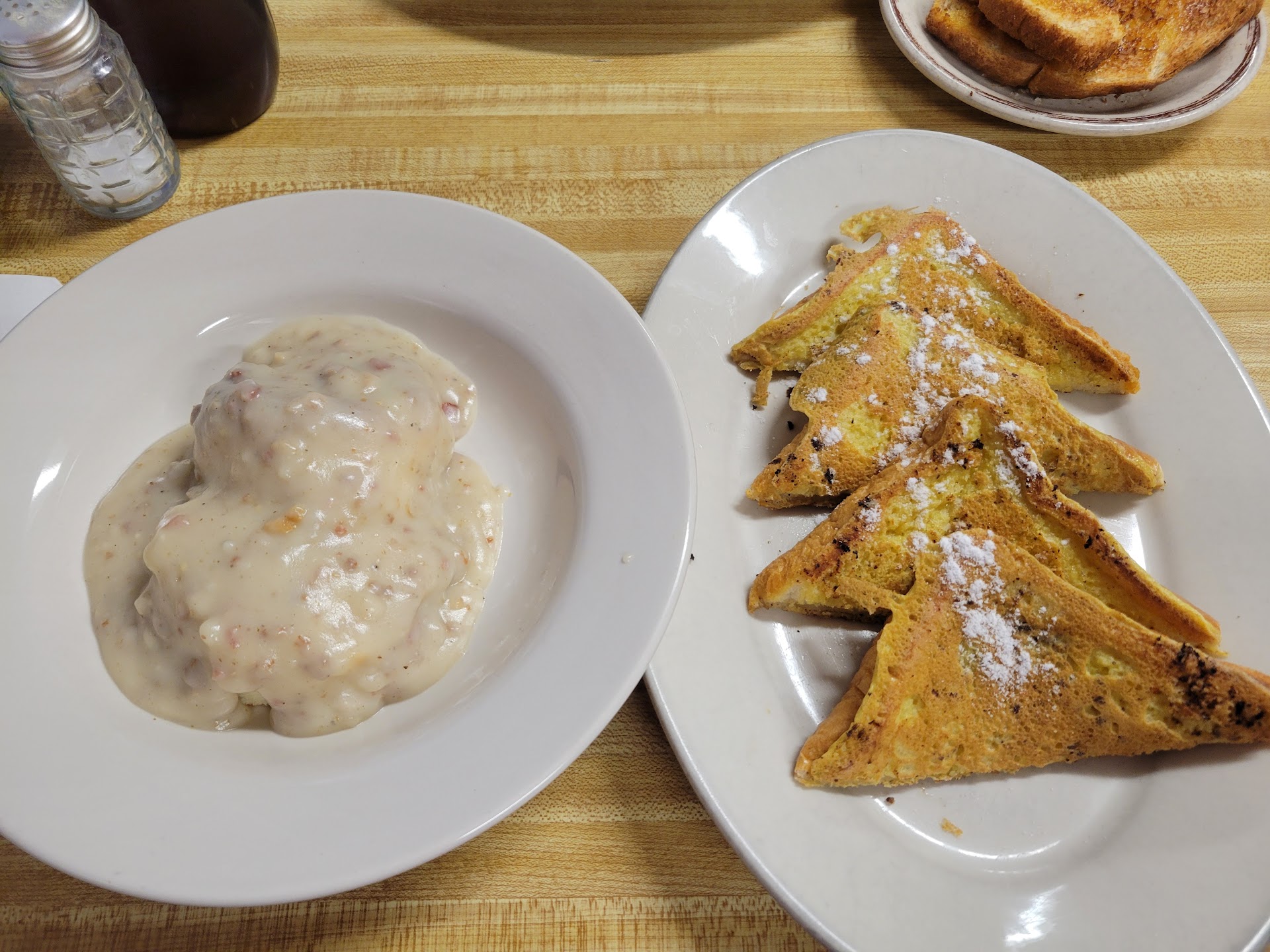 We went to try out Candi's BZB Cafe for Sunday breakfast. It was our first time there. We found easy parking right out front and more in the rear. It is a long, narrow place with tables and booths from front to back and a long counter and kitchen along one side. We arrived just before 10AM and were able to pick our table. Many empty ones. Not too busy. We sat near the kitchen (and got great, attentive service as a result!). Our waitress was very pleasant and prompt. The atmosphere was a very down-to-earth, small-town cafe style. The restaurant was clean, brightly lit and smelled great. The menu was extensive but not overwhelming with choices. I ordered the biscuits & gravy and an order of french toast with coffee. My partner ordered a more traditional egg, potatoes and toast breakfast. The food arrived quickly. It was hot and delicious. We enjoyed everything about Candi's and knew we would be back often, except for...the coffee. Well, we're kind of coffee snobs who enjoy a good Biggby or McCafe flavored iced coffee, or the many concoctions we brew at home on our Keurig. The coffee here could definitely use some work. I would compare it to Big Boy coffee, if you know what that's like...about Maxwell House quality. Fortunately, the coffee is cheaper here than most, so can't complain too much, with free refills and all. Our total bill, with tax, was only $18. I highly recommend Candi's BZB Cafe for breakfast. Bring cash. They don't take plastic. They also have a seniors menu for us older folks, although I didn't partake. Lighter fare and even lower prices! Also, you can get egg whites instead of whole eggs for just $1 more. Sorry I didn't get pics of the menu. I don't see the regular menu anywhere online but did notice the senior menu posted on their...