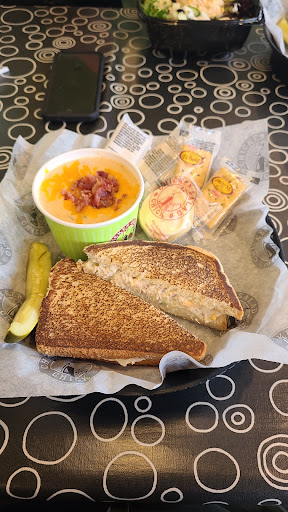 Read moreI'm on the fence between 3 and 4 on this one. Maybe they were having a bad day? My wife loved this place the last time she was here so I thought I'd try it with her. Order the Sassy Scotty on toasted white bread with potato soup. She had the Kickin Kay salad. I was disappointed with the lack of flavor. Couldn't taste the bacon or the cheddar and it just seemed very neutral. the same with the Kickin Kay. Very not spicy at all. Maybe it's just Tennessee where everything out here tastes bland to me.