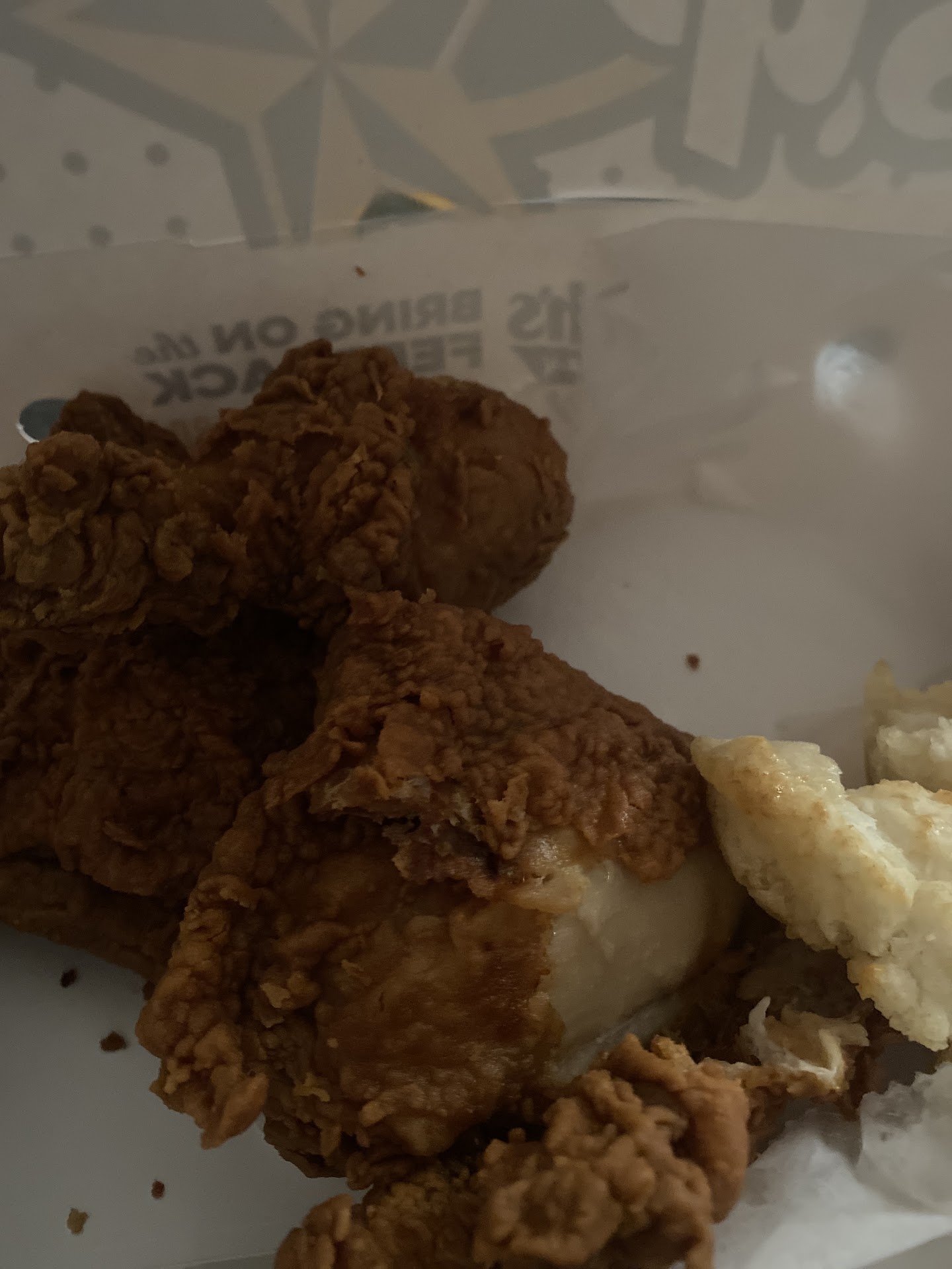 When I arrived home about 15 minutes later, ready to eat with my mother, I discovered that my order only included the chicken and biscuit. Additionally, the chicken wings were burned.