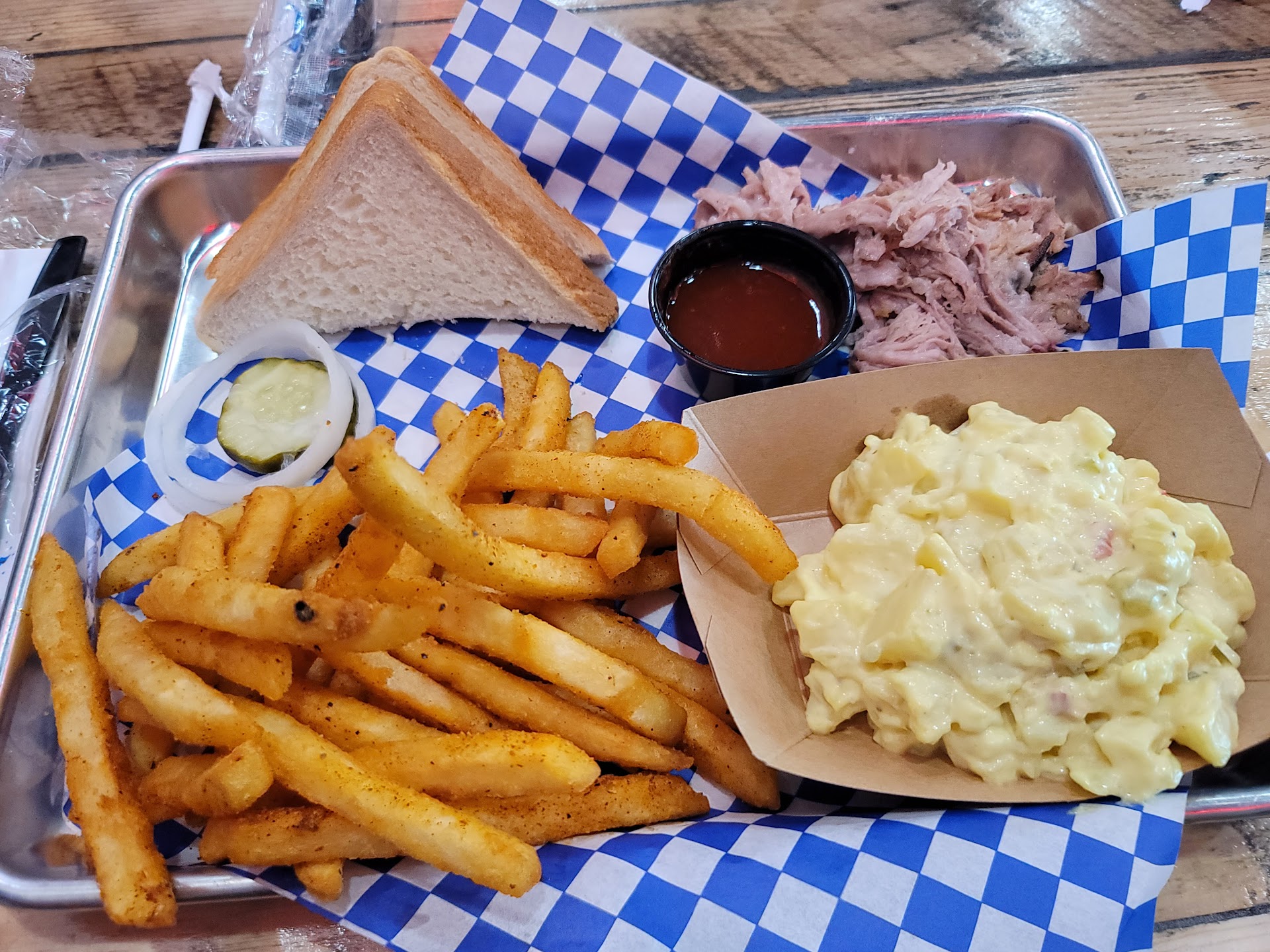 Read moreI used to work right down the road at a factory. I'm a huge fan of BBQ and also a big BBQ cook. So I'm very picky. I saw Reggies was gone. It wasn't my favorite spot but was glad to see another BBQ spot to replace it. My accounts moved so haven't been in for a couple of months now. Was speaking to my partner about the food and was going to order soon. I thought I'd leave a review. First off. The food is good. Lot of smoke flavor. Good BBQ. Ive only had the pulled pork. First off. I thought it was expensive. I just looked again and idk if the prices were lowered but it doesn't seem bad in the current economy. The spicy green beans are really good. Some nice kick. Beans are pretty decent. I dash some extra sauce in them. I always get an extra sauce because it is good. Not like everyone else's. I would come inside to order to go. Kimberly would always take my order. She is great. The atmosphere is great. The food , that I have tried is great. Since I don't get to go in for lunch. Will be ordering to carry home...