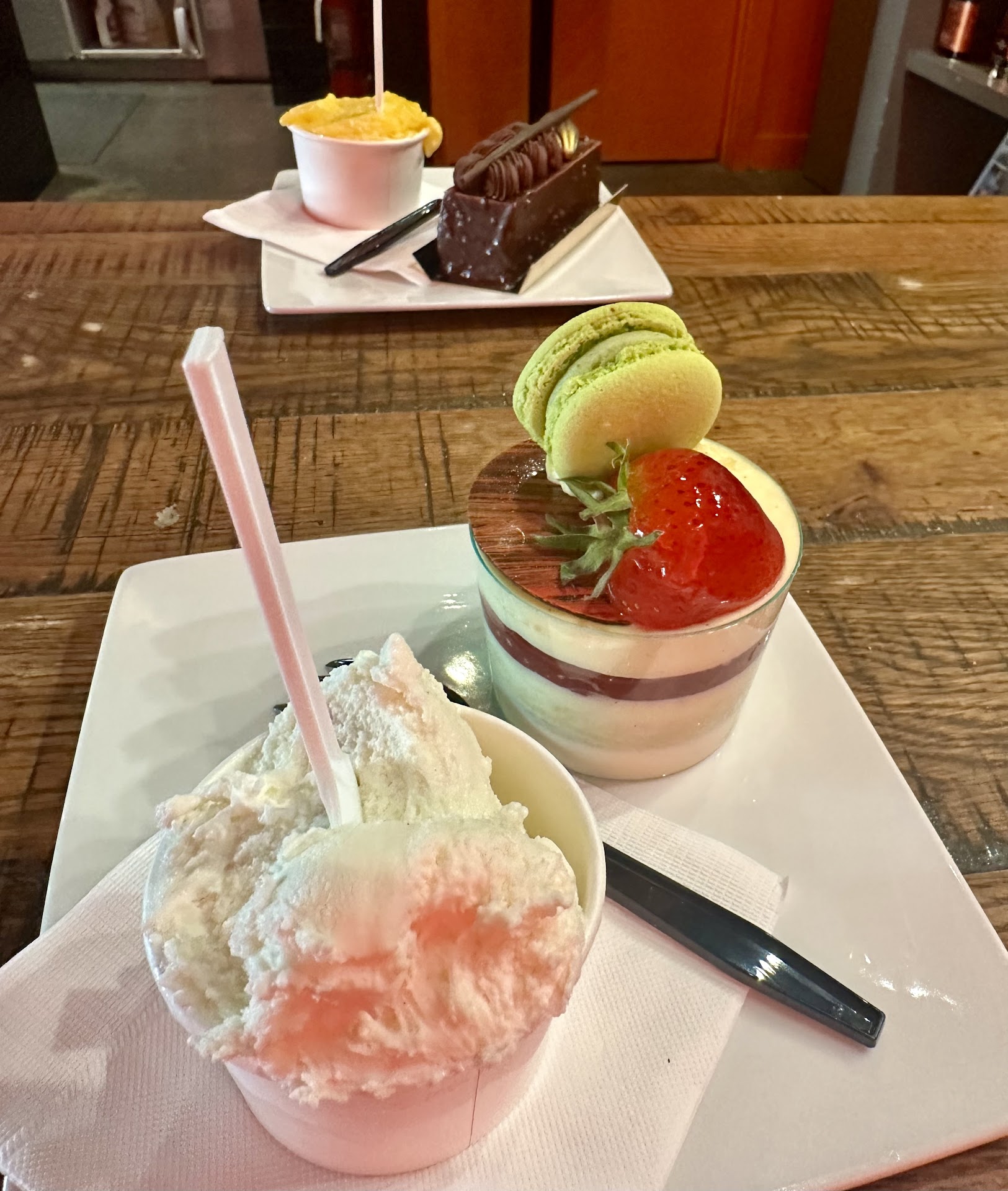 Read moreWalked in in a completely empty place. We tried ordering 4 ice creams. Sales Representative only allowed 4 tasting samples for a family of 4, and then after we proceeded to pay $8.50 per cup for a total of $35+, the sales representative told us we had to reuse the tiny sample spoons. We would have gladly reused them but we explained we had a sick child and couldn’t remember whose tiny spoon was whose. The representative said it’s the law. Never heard of this “law”. We asked could they be recycled. He said they have a “special” process for the sample spoons to be reused by other customers. I can’t imagine what that may consist of. I mean we’re talking a total of maybe $0.20 for four tiny sample spoons. Downright Strange is comes to mind. We left the place with the spoons and no ice cream. Found an amazing ice cream place 2 blocks away full of ice...