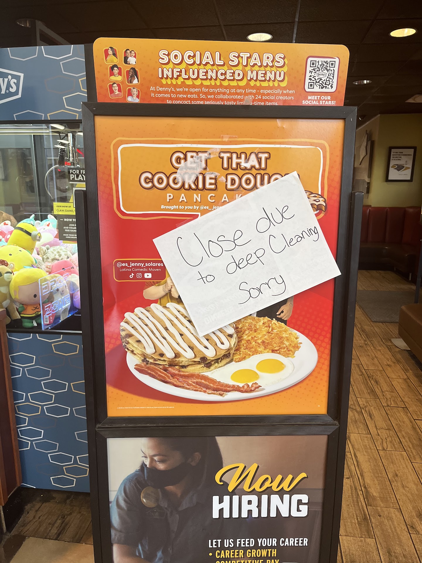 If Harold Butler, the founder of Denny's, would have seen this happen, he probably would have shut the place down and tell that woman with the ugly blouse and an even uglier demeanor to go home and reevaluate her career. Clearly customer service isn't where she needs to be. I also believe that she faked her way to the position she's in. After what I experienced, she has no business being in that position. Harold Butler built an idea into a multi million dollar business, with a want "to feed people." But leave it to a bunch of low quality people like her to tear it down. She and others who are like her never took nothing and built it into something as grand as Harold's franchise. They never worked as hard as he did. So of course they would not care how they treat and talk to people. All they care about is getting a check....