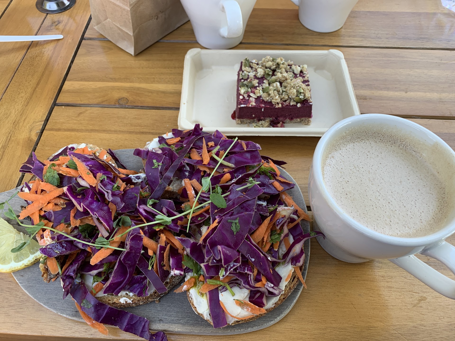 Read moreThe menu seemed interesting and innovative, so we gave it a shot. 4 people ordered 1 drip coffe, mushroom latte, another latter without coffe, lox bagel, avocado toast, argentinian sandwich, 2 muffins, acai bowl, 1 smoothie, 1 hot chocolate, toast, and a bag of popcorn. We ate in outside. The bill was over $100. The portions were very generous. The food was very good and fresh, didn’t take long to come out. The gal at the ordering counter wasn’t very personable, but she got all of the order right. The waitress was very pleasant and helpful. There were plenty of interesting items on the menu, everything was very tasty. If you are looking for eggs and pancakes - this ain’t that place. I really value places that care to serve their coffe in proper mugs and cups, and this place didn’t disappoint. Also real cutlery. Felt like we ate high quality food that was fresh and tasted good, and was served with...