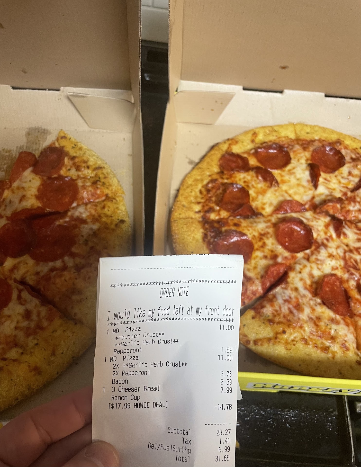 The worst experience with pizza delivery ever. I ordered a pizza , a salad and a pop. I received a call from delivery guy saying his GPS sent him to a different address even though he told me my exact address so he knew what the correct address is. The conversation made no sense. He then shows up n hands me a pizza n was about to walk away. I told him I ordered a salad and pop too. His reply was that he had the pop in his car and that he did not see on receipt that there was a salad too. But why would he not have brought the pop up to me if he knew it was mine , makes no sense. On the receipt the pizza is listed first then the salad then the pop. If he saw the pizza and the pop then he had to have seen the salad too since it was smack dab in the middle of the two. He gave me my pop and then said he would be right back with the salad. I had initially waited to eat the pizza as I had ordered the salad with it therefore meaning to have it at the same time. Plus Howies is straight down the street from me not even 5 minutes away. After a half hour passed I decided to start eating the pizza as it was obviously going to be already getting cold , I also at that time , called Howies. I waited 14 minutes n 48 seconds before they answered the phone. That wait time is completely unacceptable. A business should at minimum answer the phone and tell the customer that they are busy and please wait a moment. The girl who answered didn't even know about my order then gave me to the shift leader who she actually called a manager. The shift leader acted as he didn't know anything about the order but then said that he did not know why the delivery guy had not come back with the salad yet but then I caught on to the fact he was talking to him in the background. I asked him how he didn't know why my salad was delivered if the delivery guy is stranded there with him and he still told me he didn't know. I could tell that he didn't even care. At this time it had been a full hour since the guy delivered my pizza. I received zero explanation of why he had not yet been back with my salad. I received zero sincerity to nor professionalism from this shift leader who was the highest ranked employee working at the time. He eventually told me the guy was then on his way to deliver my salad and he offered a full refund after I told him that the service was unexceptable. Another 15 minutes goes by and the guy delivers my salad saying he was sorry but didn't have a care in the world and no explanation to why it took over an hour. I continued to eat my pizza. Half way through my second piece I take a bite and feel hair. I pulled on it to see if it was mine but trust me it was not. This piece of hair is literally in the middle of the pizza and baked in . A soft tug and it doesn't even come out. I thought food service workers with long hair are suppose to wear there hair tied back back or in a net , apparently not at Howies though. Absolutely disgusting. Thanks for ruining my dinner Hungry Howies. To the top manager there , I've worked management before and I held my employees accountable and made sure customers were priority and I had high standards for how my business was being run. I think there's a whole lot of rehiring to do there...