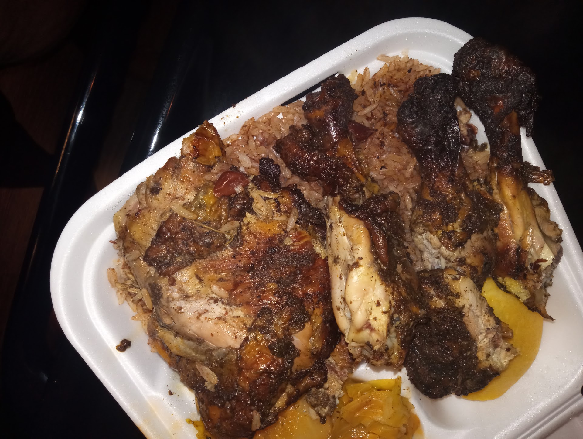 Read moreFood is my life: I am a professional chef, which sometimes sounds pretentious... but I just want ya'll to know that I take food service very seriously. I was happy to find this little gem of a kitchen with good to great reviews, just a few blocks from my mediocre corporate hotel- and open late to boot. I ordered jerk chicken, yellow rice, and plantains. I added a Red Stripe and a Beef Patty at the last minute, which turned out to be a genius move. I ate the Patty on the way home, as everyone SHOULD, but the experience was so moving that I almost cried and could have gotten in an accident. There should have been a warning label on that little grease-stained, unassuming brown paper bag the Patty was stuffed into: "Do Not Eat and Drive". The crust was so flakey and perfectly crispy, and the spiced beef was better than any I've ever tasted. These are bold flavors, but they were not at all over-salted (which is so typically the case with complex spice blends) and everything was harmoniously balanced. This isn't just a hole in the wall take out spot: This is food made with a heavy hand of LOVE. I have eaten in incredible places, with stars and celebrity achievements, and tonight made me question EVERYTHING. In terms of my own career, do my guests walk away with the same warm, intangible longing? Does the love I have for my food become an impossible-to-trace kind of "Umami" that is so beautiful that those who eat my food shed tears of JOY? Friends, I have eaten great food... but this was a meal I will be replaying in my mind forever. Simple, honest, and an orgasm in every bite. Chef(s): Thank You so much for feeding me this dose of...