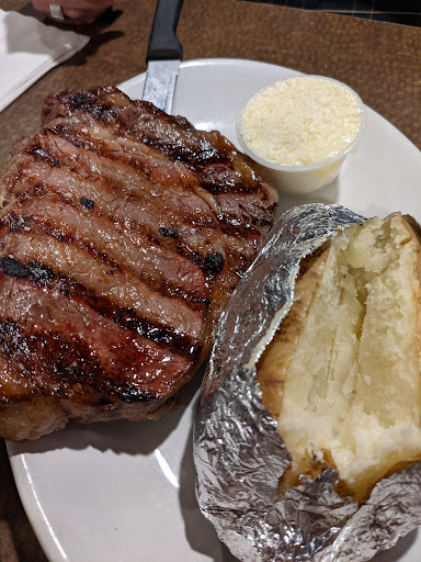 First time eating here and I got the ribeye and fried shrimp dinner ($20) with onion rings and fries. The shrimp and onion rings were fantastic. That good, light crunch that makes you feel guilty later because it was fried and full of flavor. The steak was really good, thick, juicy, but a little burnt (maybe the grates needed cleaning?), and cooked nearly perfect. The fries left something to be desired (crinkle cut, basic). My plate was incredibly small for what I had ordered and I had to shift my fried foods to a napkin to make room for the steak, hidden beneath everything. Salad bar looked good when I walked in - basic, but looked fresh, at least. The menu has many, many, many items to choose from - maybe could tone it down a little, or maybe chose a different layout/font so it doesn't look so overpowering. Some things were hard to read even for my young eyes. Simple font helps. Also, more green veggies to pick from like spinach or asparagus - either are great pairings to a steak alongside a potato, for example. Menus need to be updated due to drink brand they carry - Coke now, no Pepsi. No adult drink menu = no adult drinks. Though a good beer or some kind of wine or cocktail would have gone great with the meal. The kids menu has about 15 (exaggerating - or am I?) items, which is also a bit much, but at least they have plenty to chose from for even the pickiest of eaters, or those with more refined tastes. Pricing style can be a little confusing, but, again, the layout would help. They needed a hostess/take out person as I cringe when I see waitresses having to seat the door and also doing take out orders. Then again, this was my first time, on a Friday night around 8, maybe they do have one for a different day/time? If not, they need one. In summary - food and service were great. Plenty parking. Seated mostly quickly. Downside - small plate for large amount of food, ketchup is in packets??, menu layout/print, overwhelming number of food items, and no adult beverages available. Could use an update in decor, but the food is always what brings people in - if the food is good, people will overlook how a place looks unless it's an absolute disaster. This place was clean and has newer looking seating, just not what I would have expected for this kind of restaurant - if you want to get picky about how it looks. Health score of 99, good food, clean sitting, I enjoyed it. Will...