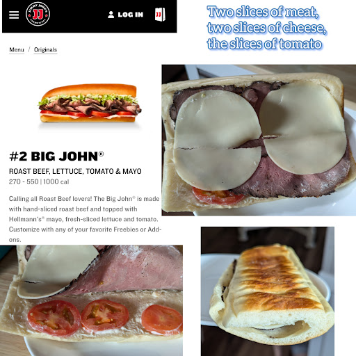 Read moreUp until now I've had mostly good experiences with my local Jimmy John's. I purchased a chicken wrap for delivery. What I received was a wrap that was square and about the size of a piece of bread. So I decided to call the store to let them know I wasn't happy about paying $10 for what I got. I explained to the manager that the wrap was tiny and square and I ordered the same exact thing last week and it was much different. He suggested they had made it wrong the first time and put too much on it and because I removed the lettuce and tomato it would be smaller. I understand that but I also added cucumbers and there were only 2 on it. And it was square not anything like the picture. While he did apologize it was definitely not sincere and I wanted them to fix it but I ended up just hanging up before I got too upset. The wrap was good just not...