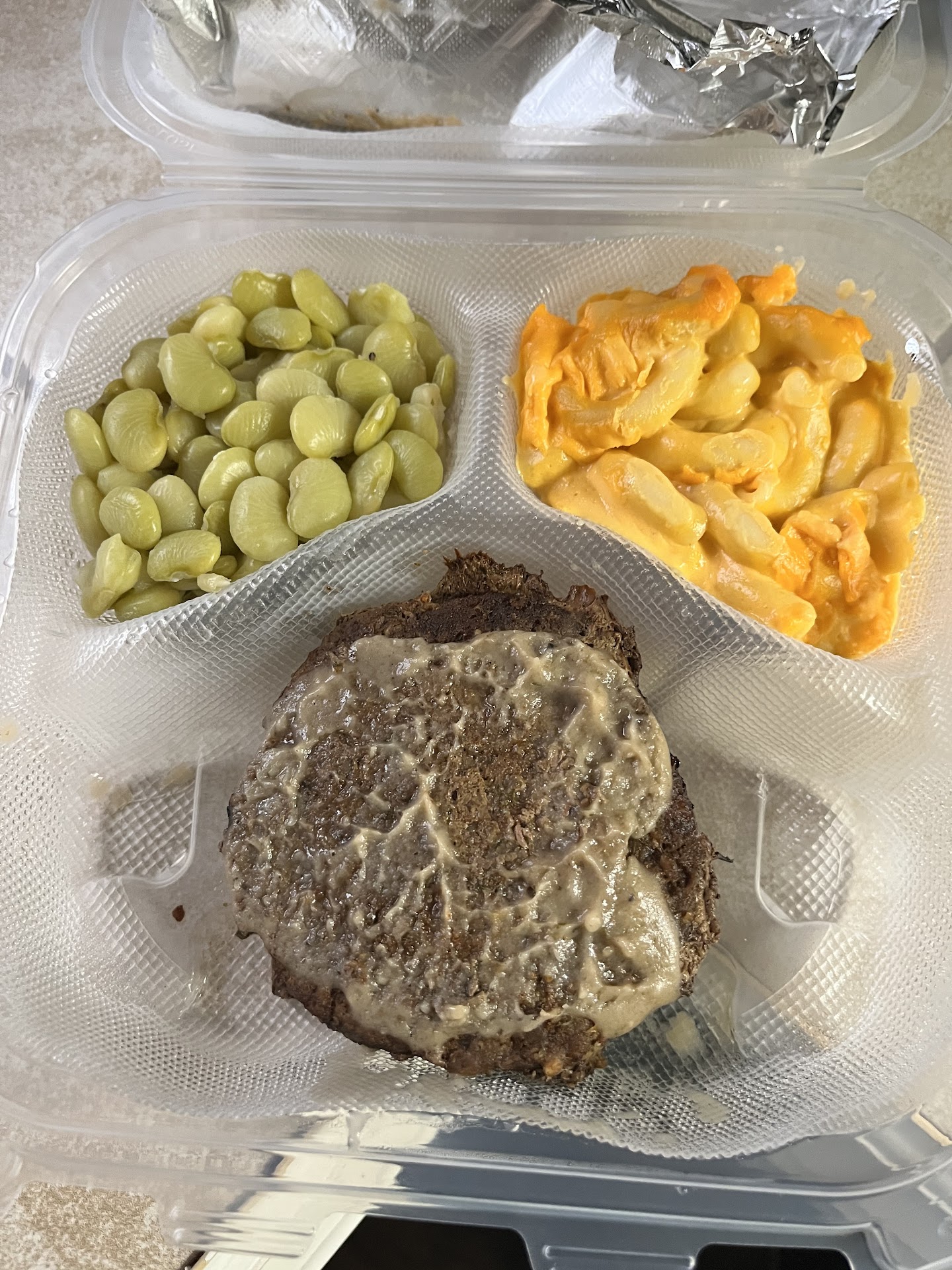I went here for lunch one day because I'd noticed people eating outside when I was leaving Starbucks. You walk up to the counter to order your food and wait, but there's not much space. That wouldn't really bother me if the food was good, but it wasn't. I got my food to go because I guess the place was so small and so crowded. The chicken and dumplings were ok at best. The mashed potatoes were not great and only had maybe a teaspoon of gravy on them. So I probably wouldn't say their food isn't good after one experience. Maybe it's just the one thing I got. Nope. My work had it catered a week ago and it was worse. The hamburger steak was not seasoned and it wasn't in gravy. The gravy on the side was super thin. The sides were more of the same. I don't even like green beans and the green bean casserole was the best part which isn't saying much.