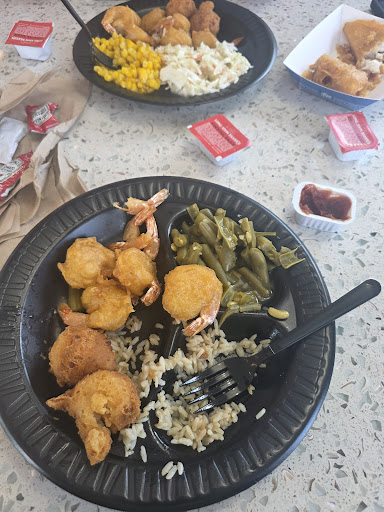 Mediocre in all categories. Maybe it was the timing or just a bad day for the crew. Maybe this is the norm. My first experience at this LJS. Were out of a lot of items between 7:30pm and 8pm. No Cole slaw, no salmon, no corn. I ordered a super sampler and it was short shrimp. Hush puppies and fries were dark and had a taste of burn and I didn't even want fries. My fish looked like the top was cut off, my crab cake looked old and was still cold in the center, and chicken was very small. My friend ordered salmon tacos, but settled for fish tacos since there was no salmon and an order of cheese bites. After I pay, I check the receipt and notice being charged for a fish taco meal. So I wait for the cashier. She ignores me. Her attention was on her man friend and kids and getting their orders done right, She then goes back there to make their food personally, beside her manager, that I guess had been on her break, because she was walked up eating. I knew it was her boss because she called her 'boss lady.' She then takes the lady, that came in behind a while after me, order. From the kitchen window. After she serves her family food, she comes to ring up the lady. Ignored me, even though she can see that I haven't moved and am obviously seeking her attention. She goes back to finish packing my order without acknowledging me. When she brings it, I addressed my issue of being rung up for A taco meal and only wanted the entree. She explains, "It only comes in a meal." Now I'm wondering why she didn't sub the fries for cheese bites. Before I can inquire and ask for my cup, she goes to talk to her man. If I wasn't on my 30 minute lunch break and didn't have any more time to wait, I would have chosen a refund and gone...